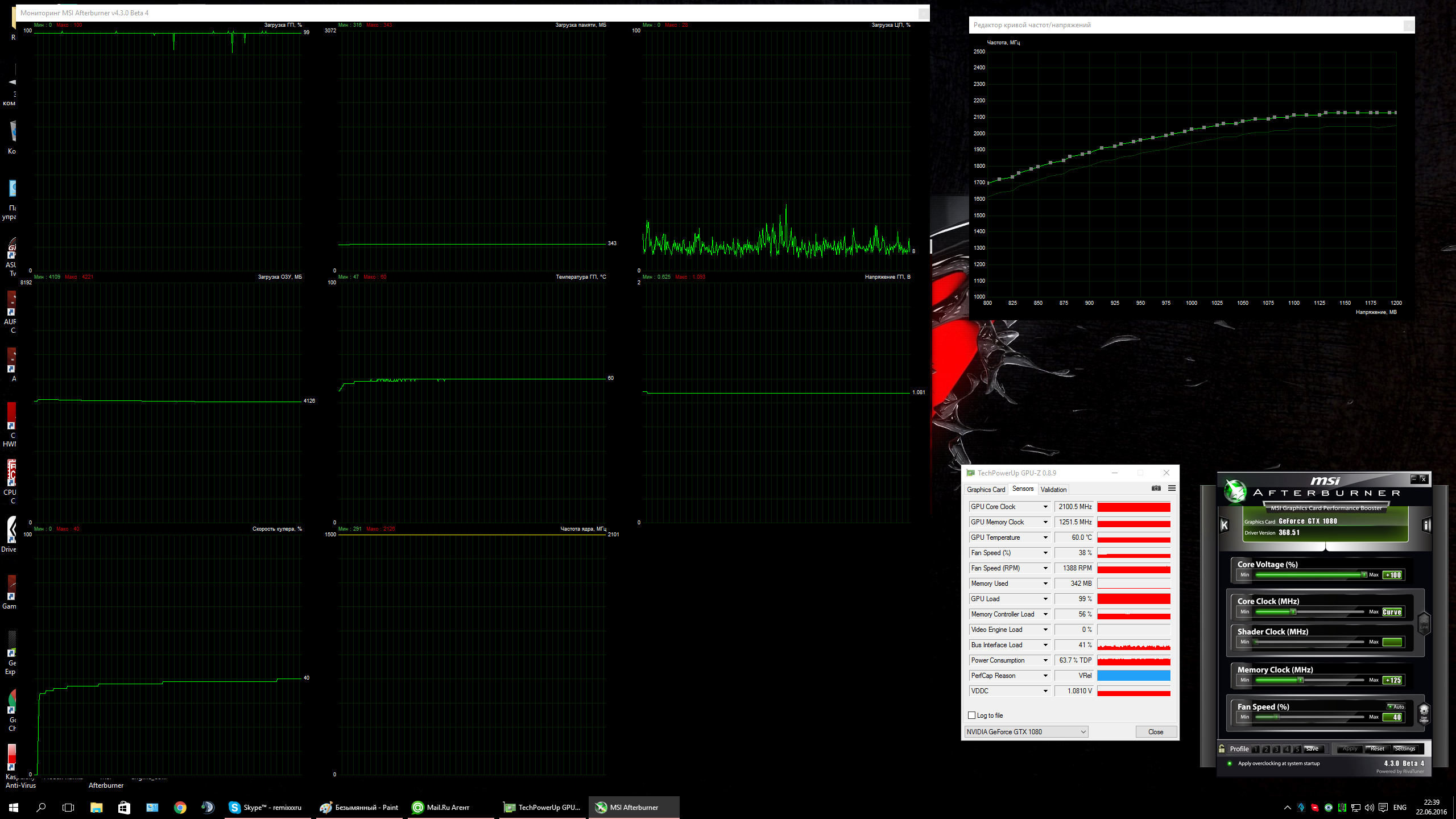 RemiX Нагрузки на процессор у вас нет совсем. Если ей навалить, то она сразу частоту сбрасывает, хоть и нагрева нет. Мешает power limit. Я кстати взял ASUS 1070FE, на одном винте, пломба. Не скажу, что очень рад, очень хотел MSI (могу продать свою через недельку, кто хочет, citilink). Ну а в целом, карта совсем не шумная, если только совсем вплотную прислушаться, слышно, как ШИМ шуршит. Максимальная температура 83*С была, это при вроде 55%, 2200 об/мин. До 70% оборотов вполне терпимо по мне. 100%- это 4000 об/мин. В целом, кто разгоном заниматься не будет, референса хватит за глаза. Особенно если ограничение не снимут.