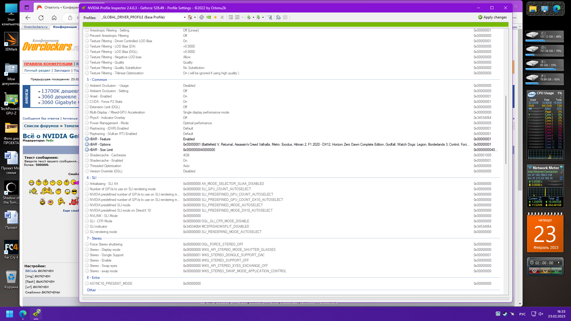 Однако, наткнулся в ветке 4090 что ребар нужно включать не только в биос, а ещё и в инспекторе, что бы оно работало. Думаю дай проверю, ибо у меня после вкл. ребара в биос практически никаких изменений не было. Ну и правильно, по умолчанию в дровах он выключен и соответственно не работает, а после включения соответственно видно что в синтетики типа марка, что в игровом бенче от лары. Путь не гигантское чего то, но это совершенно бесплатно по сути, в ларе вон минимальный с 89 до 92 подрос на пустом месте, гп зависимость правда просела, процессор с трудом уже осиливает. Да, в марке специально 2 скрины выложил сегодняшних, что бы не говорили про погрешность.