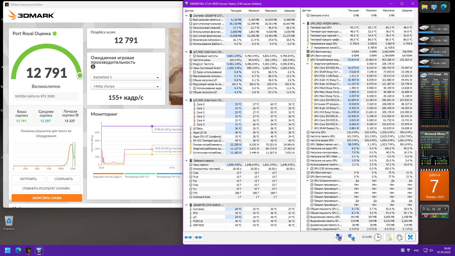Угу, заметил. Часть настроек не применилась. Память тоже нет +1000 МГц. Сейчас всё вроде применилось как должно. Перезалил новый прогон в свой пост. Старый результат удалил как недействительный.