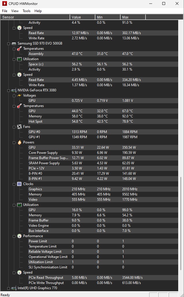 А сколько макс на 3080 (в данном случае GIGABYTE GeForce RTX 3080 GAMING OC имеется) на памяти температура? НА чипе в играх максималка 65, на хотспоте 75, а на памяти и до 90 может долететь, если какой нибудь киберпанк. Это норма?