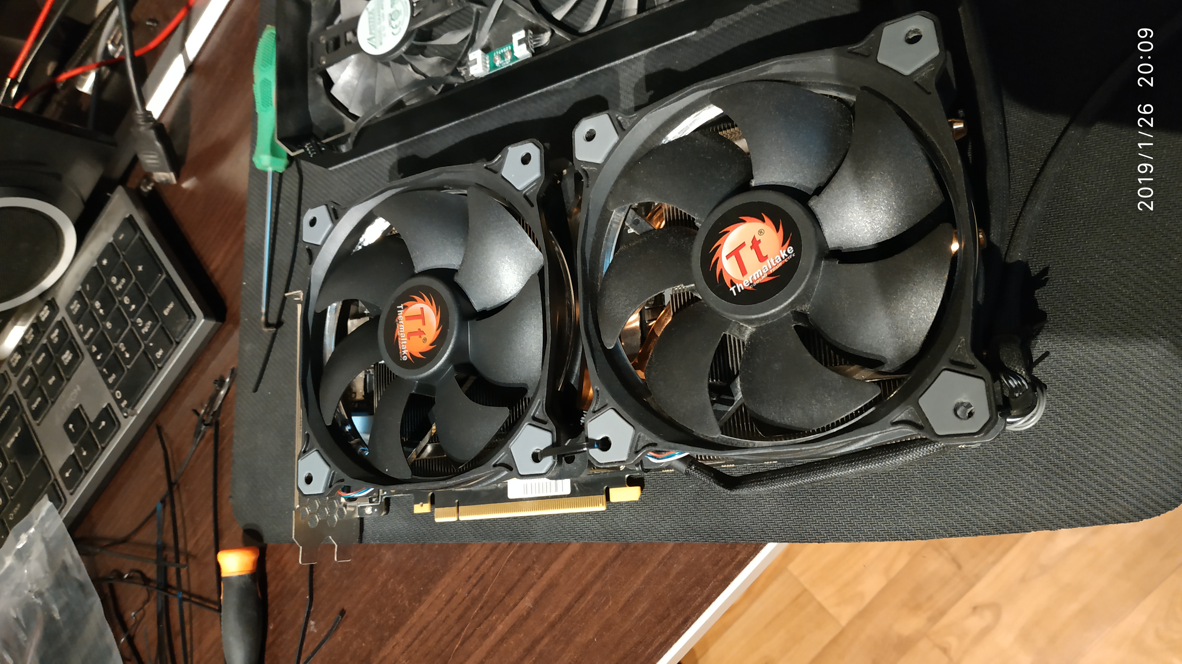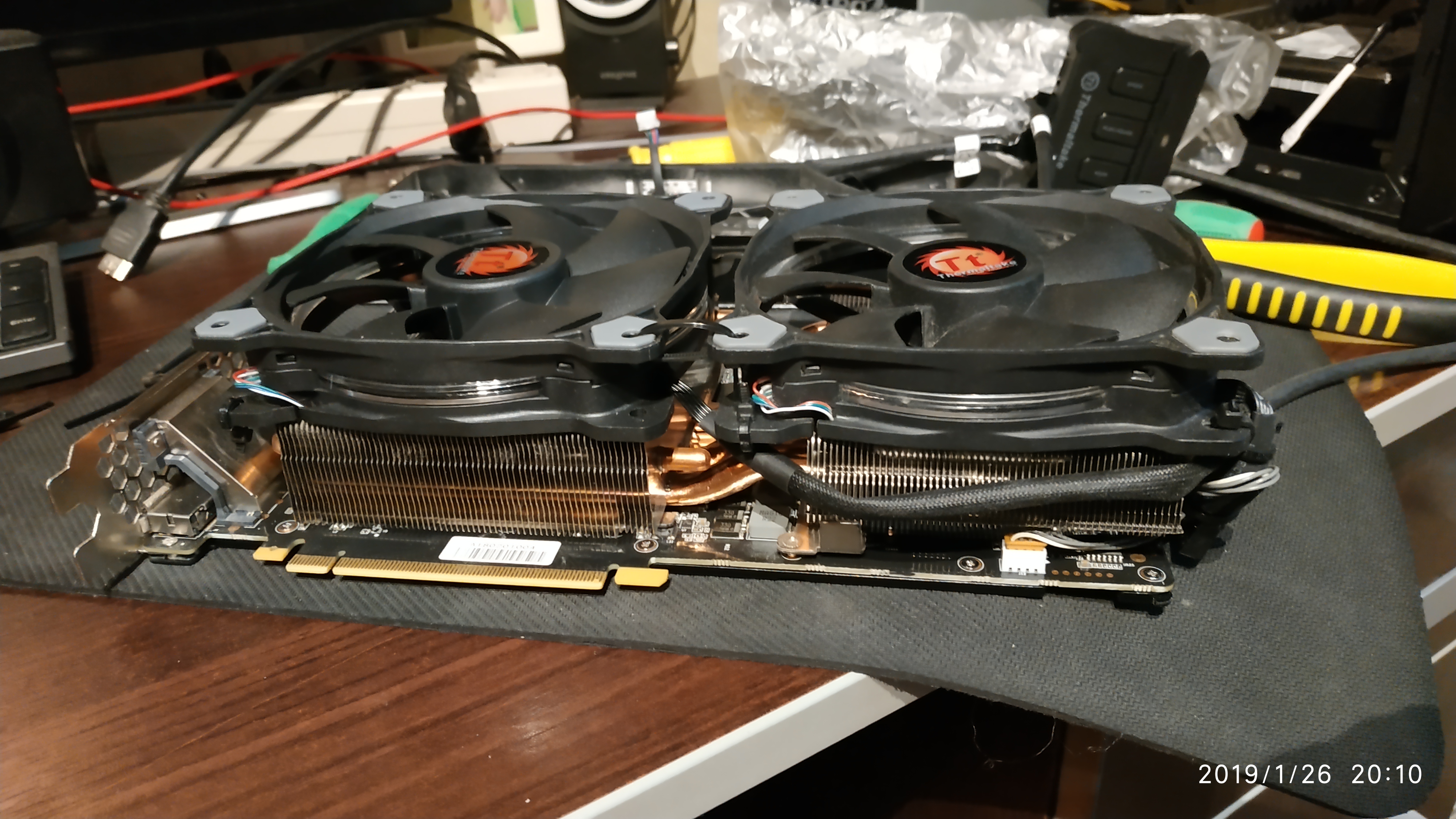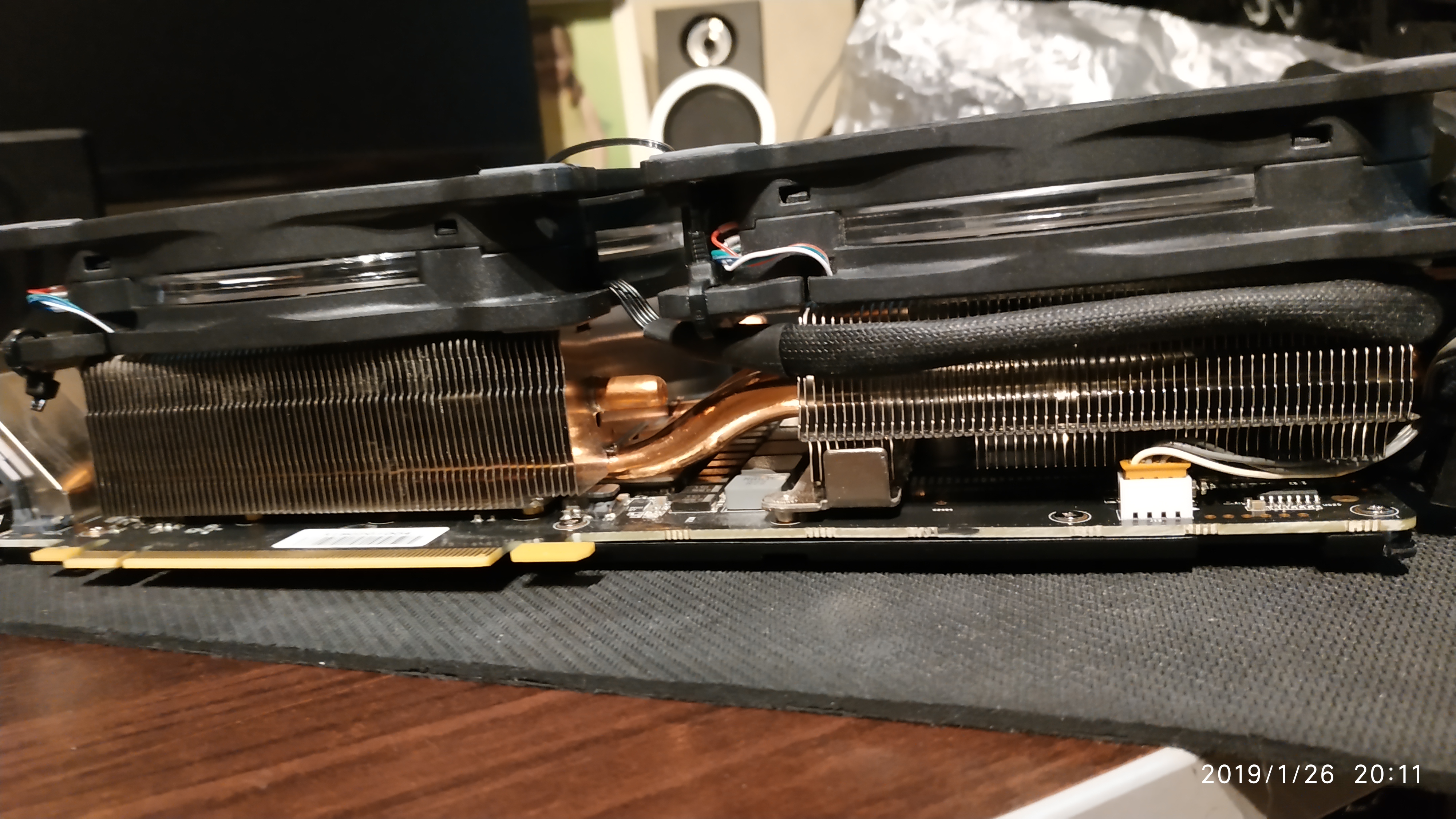 За одно проверил пару моментов: - у карт 1080(1070ти) от palit действительно врм слишком близко к чипам памяти и, как тут уже кто-то высказывался, это негативно сказывается на разгоне памяти. - немного модернизировав охлаждение удалось разогнать память дополнительно на 250 МГц, раньше там было глухо как в танке. Поэтому не слушайте Руфусов и остальных, кто тут пишет что хороший охлад - это переплата бесполезная и можно довериться производителю, которому виднее или нвидии с ее 84 градуса на чипе. Экономия на охлаждении - это будущий отвал чипа, скудный разгон и "турбобуст 3.0" частоты до самого пола. А ещё вой вертушек, который слышен в наушниках). - управление 120ками можно подключить к штатному разъёму видеокарты с той лишь оговоркой, что кривая в % будет не совсем корректна, поскольку процент раскрутки вентилятора будет рассчитываться относительно стандартных вертушек. А рпм при этом показывается верный. Тоесть у меня вентиляторы могут быть на своей максимальной скорости (1500рпм), при этом кривая вентилятора будет считать его раскрученным на 60% ибо для стандартных вертушек это верно 1500/2500. Для подключения я использовал колодку напаянную параллельно 4 пиновому разъёму из старого видеомагнитофона. Довольно распространенные колодки подключения кстати. Но повозиться придется чтобы достать и вставить. Очень тяжело вставлять/доставать - мешает радиатор. А ведь пломбы нам целые нужны.