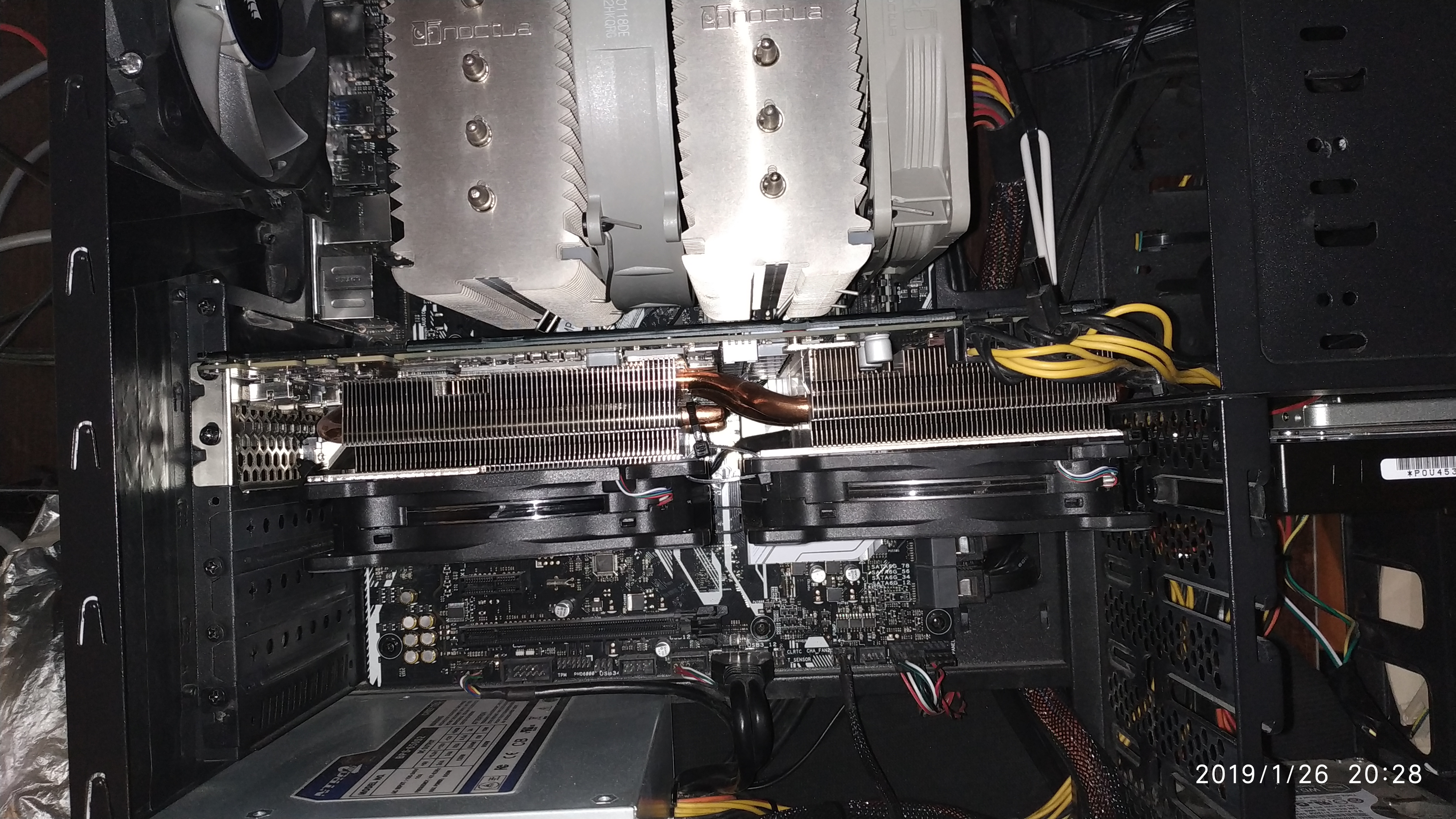 Ну,чуть сдвинь на себя вертушки.Пусть часть воздушного потока "мимо кассы",все равно лучше 92-х мм. 1200-1300 оборотов хватает? Идеально бы их от карты запитать.Но будет ли работать? В теме максвеллов один владелец на Гигу вертушки запитал от родных разъемов.Вроде Арктики,но точно не уверен.