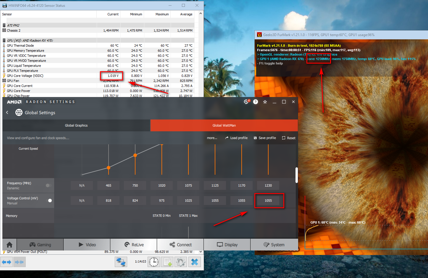 Q: По мониторингу напряжение на GPU немного отличается от установленного. A: Реально напряжение выставляется кратно 6.25 и округляется в большую сторону. То есть, если Вы выставили 1137, то реально у Вас будет 1137.5, а если выставили 1138, то уже реально будет 1143.75 мВ.