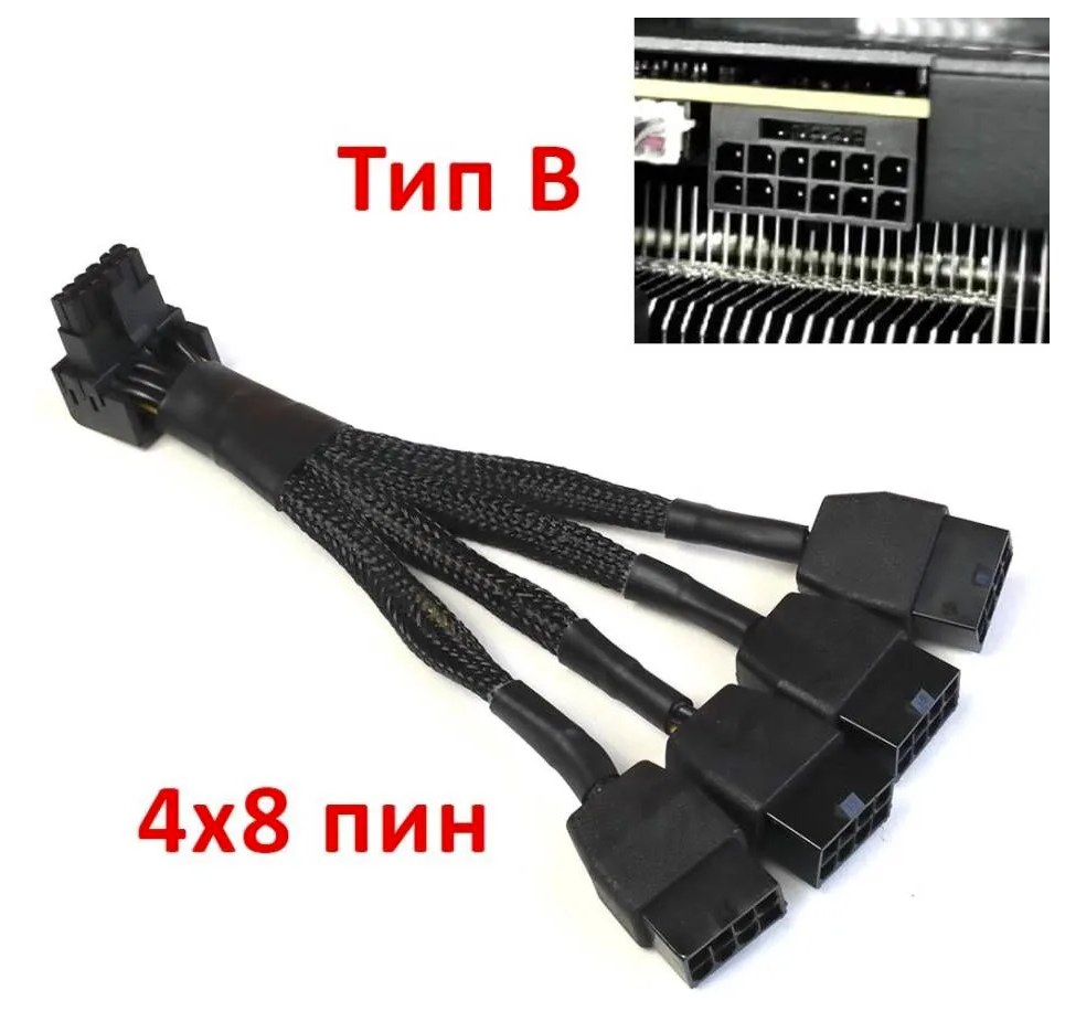 Дано - Палит 5090 и старый блок питания Corsair HX750w, поэтому подключение пока через 4 родных кабеля 8пин и палитовский переходник 4х8пин --> 12v-2x6. С ним все ок, вопросов нет (карта придушена пока по лимиту). Но с ним не закрывается боковая крышка, поэтому пока приобрел другой переходник, похожий на родной, только угловой, чтобы кабели сразу вниз от видяхи шли.