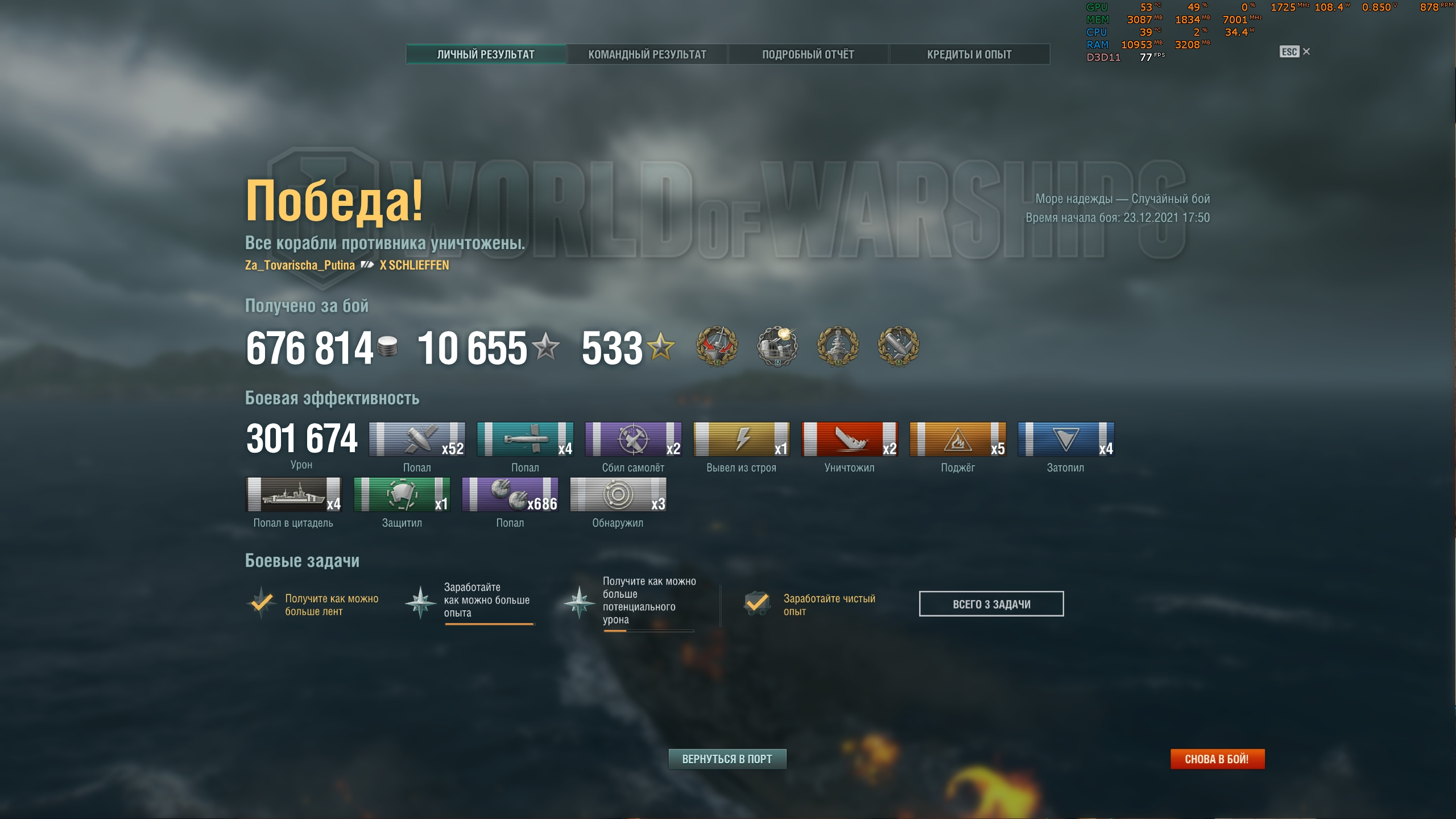 1 бой в корабли, 2к ультра, 120 фпс, карта прогрелась до 79