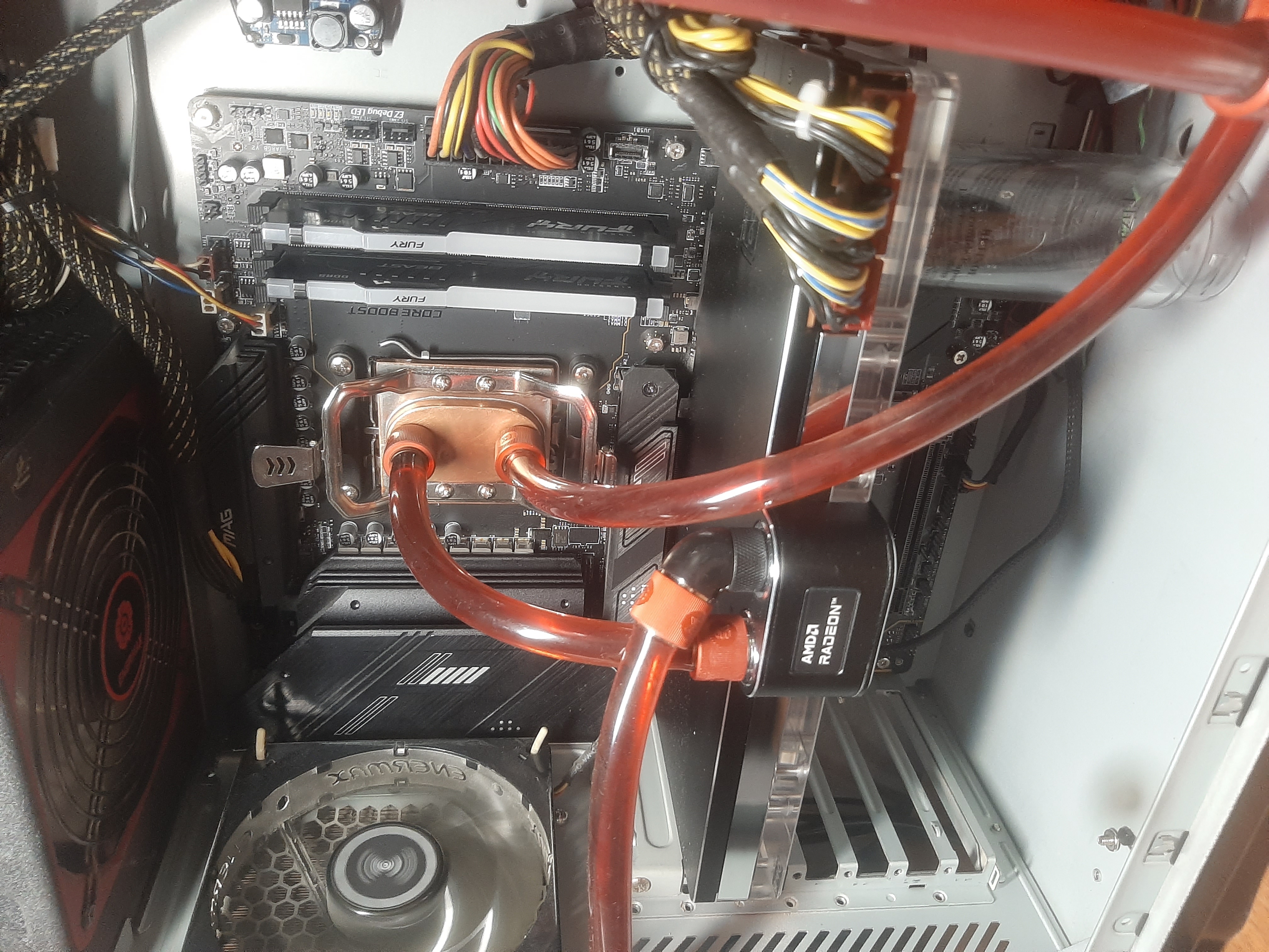 в одном контуре.... где радиатор-то? а подпорка что нужна? прям провисает без неё? я когда на три болта закручиваю, видюха в такой упор встаёт хоть кирпич сверху клади