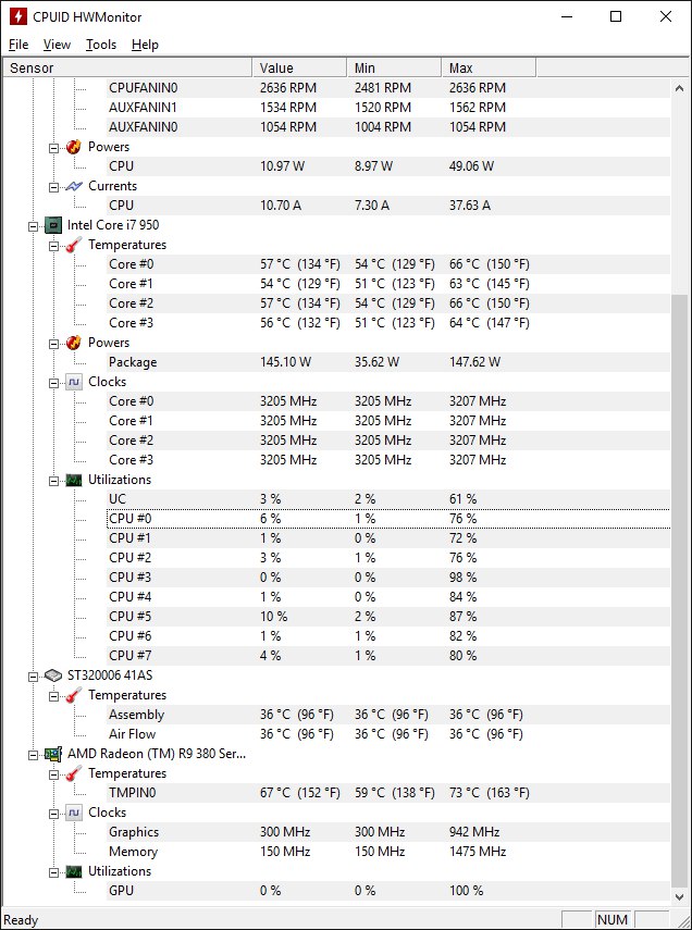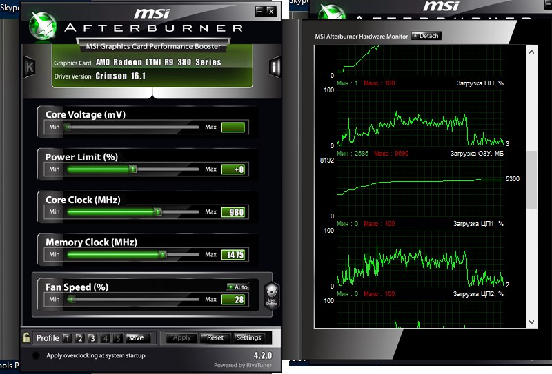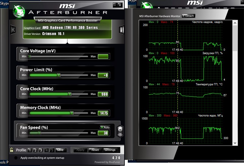 Хороший пример странной работы StarCraft II Legacy of the Void. Там видеокарта никогда не загружается даже на 90 % и FPS довольно низок (40-60), как на моей предыдущей GTX 660. Процессор при этом загружен на 20-30%. Есть чувство, что если бы она работала на 100% FPS был бы на много больше на ультрах. Игра Fallout 4 Ultra Settings. На high Settings тоже самое. FPS то 60 стабильно все гладко, то сразу до 25 может упасть. На средних ситуация не много получше, просадки не такие. Неужели R9 380 не тянет Fallout 4 например? Я на средних играл на GTX 660, которая лагала в Black Ops 3, а R9 380 сейчас на запредельных настройках выдает стабильно 60+.