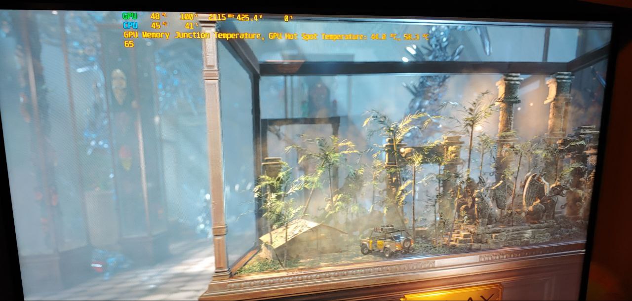 Комната игровая в 10кв метров. Если потребление выше 250в я сижу как в бане. Для меня как раз максимум 270-275в. 300В уже очень сильно чувстуется. я пробовал профиль от балды 1900 0.837, но пока еще понял про стабильность. Киберпанк около часа держит, но мне жарко. При 0.775 1720 ГПУ 63-64 1350-1450RPM Память 76 Хотспот 78. Запас очень большой.