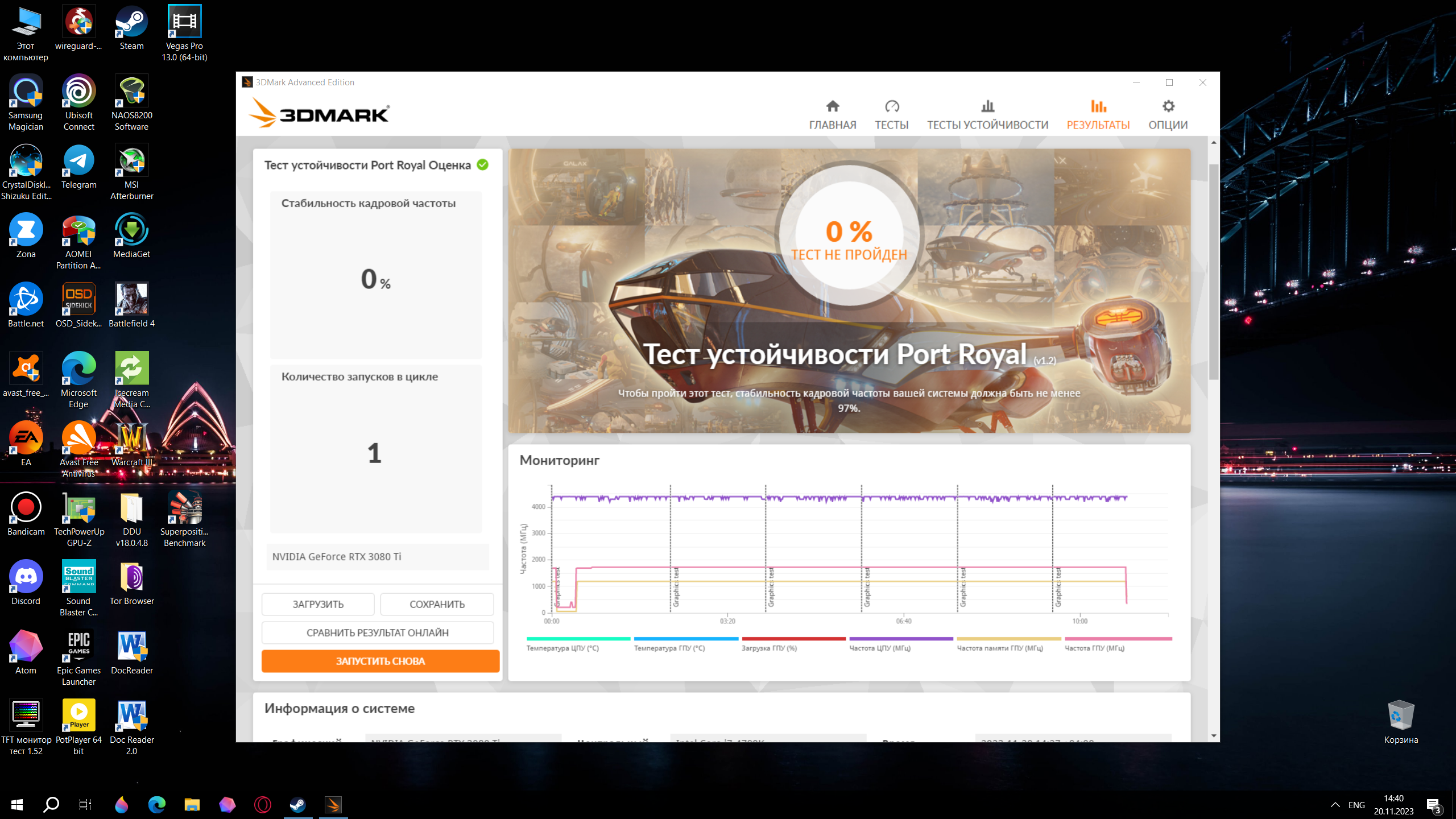 Что значит кадрова стабильность ? 3д марк не прошел стресс-тест. А вот бенчи и игры не вылетают