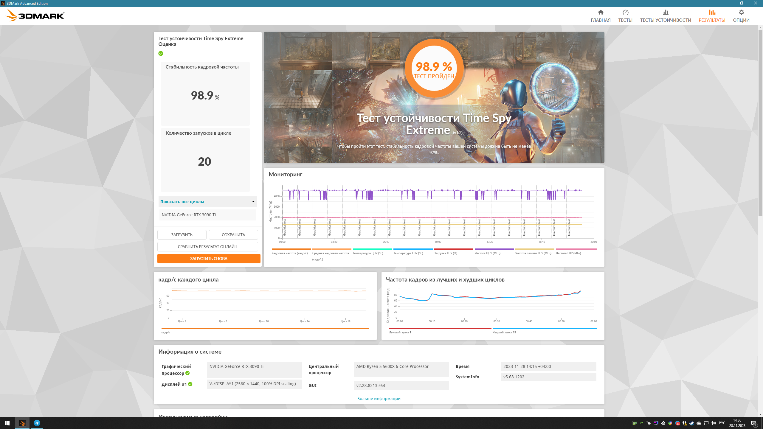 Sprintin Сегодня проходил 2 стресс-теста в 3DMark. Я не знаю почему мне мой друг сказал мне об этом, я не задумывался до сегодняшнего дня, о том, что частота ВК может быть подозрительной, и для этого у меня есть причина, я никогда не занимался разгоном и не собираюсь этим заниматься. Тем более - что там можно крутить у 3090Ti мне интересно) на этой ВК летает всё и без всяких разгонов. Андервольтить тоже не хочу, ну потребляет она и потребляет, мне пофигу. По заявлению моего друга, ему показалось, что 2050 MHz частота в работе ВК в играх это многовато. Может кто разбирается в этом вопросе? Действительно ли 2010-2050 MHz это много для стока 3090Ti? На мониторинге CPU-Z приведены максимальные точки температурные.