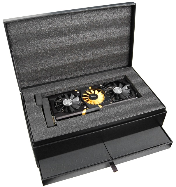 Комплектация следующая: переходник DVI/D-Sub; два переходника питания PCI-E 6pin/8pin; мостик SLI; три переходника для измерения напряжения V-Check Points дополнительный радиатор VRM; диск с программным обеспечением.