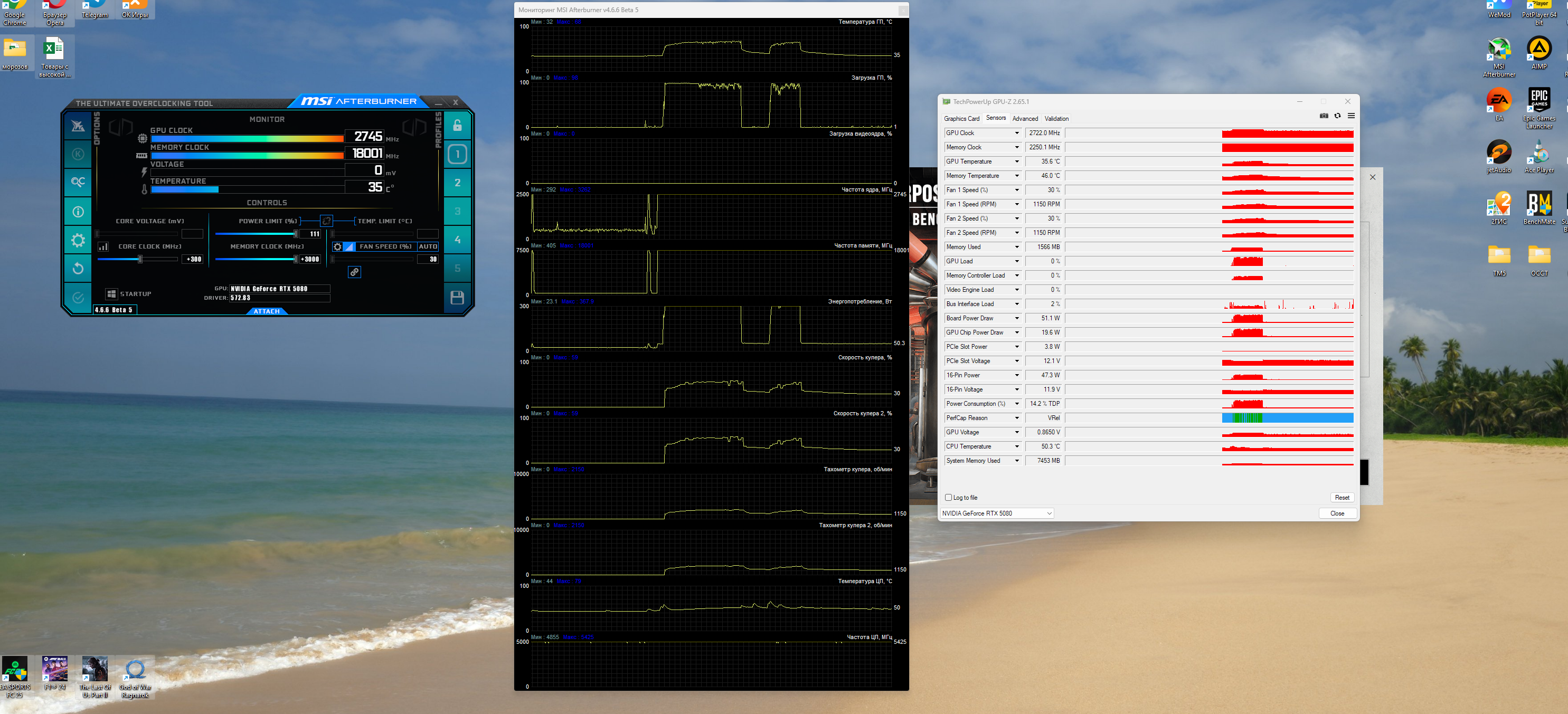 всем привет. Недавно появилась проблема, у меня rtx 5080 gamerock oc. В бенчмарке Superposition нагрузка начинает падать до 300 ватт. Пробовал и разгон, и на оригинальных частотах. все одно. Полсе перезагрузки нормально сначала все работает, но потом опять также. менял pci c 5 на 4 не помогает