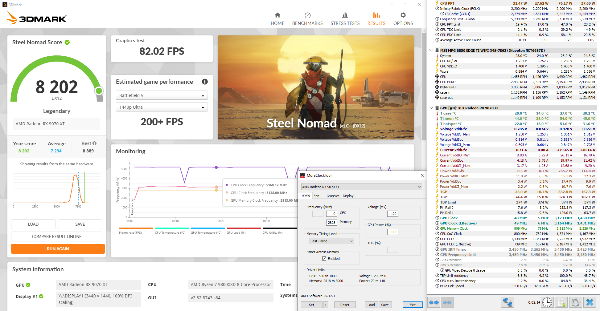 inzer890 В Номаде влияние проца околонулевое. Если ты про рез-ты вверху - там карта с корректировкой (bias) VRM под LC. С заводским пресетом (под воздушный кулер) будет ~ 7,270 в стоке и ~ 8,000 с разгоном. На твоей карте TBP max 363W (на моей 374W), да еще небось и Ташкент внутри.