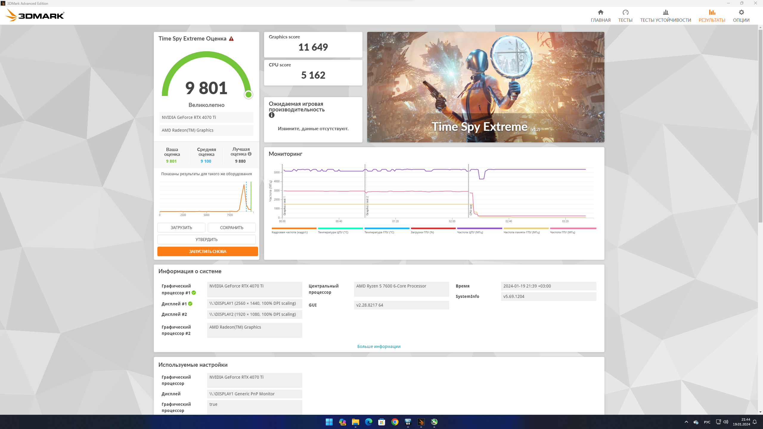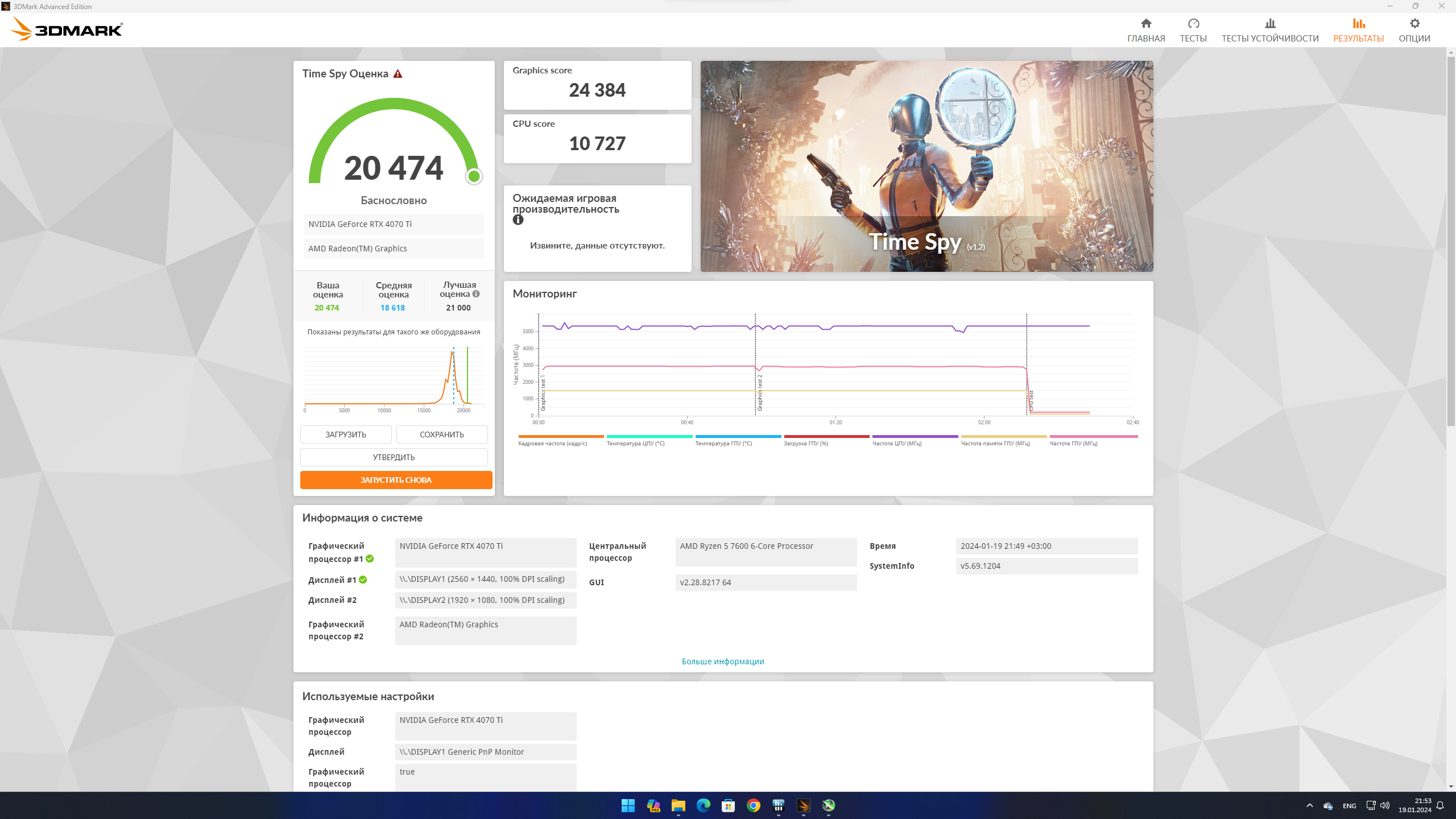 Не поленился, сбросил в сток и прогнал. Теперь понятно почему партизанят на 4070, связка 9900к на 5.0 с 4070 выдала 11387, против моих 12824. Хотя всё равно не особо понятно, ну не шмогла и что?