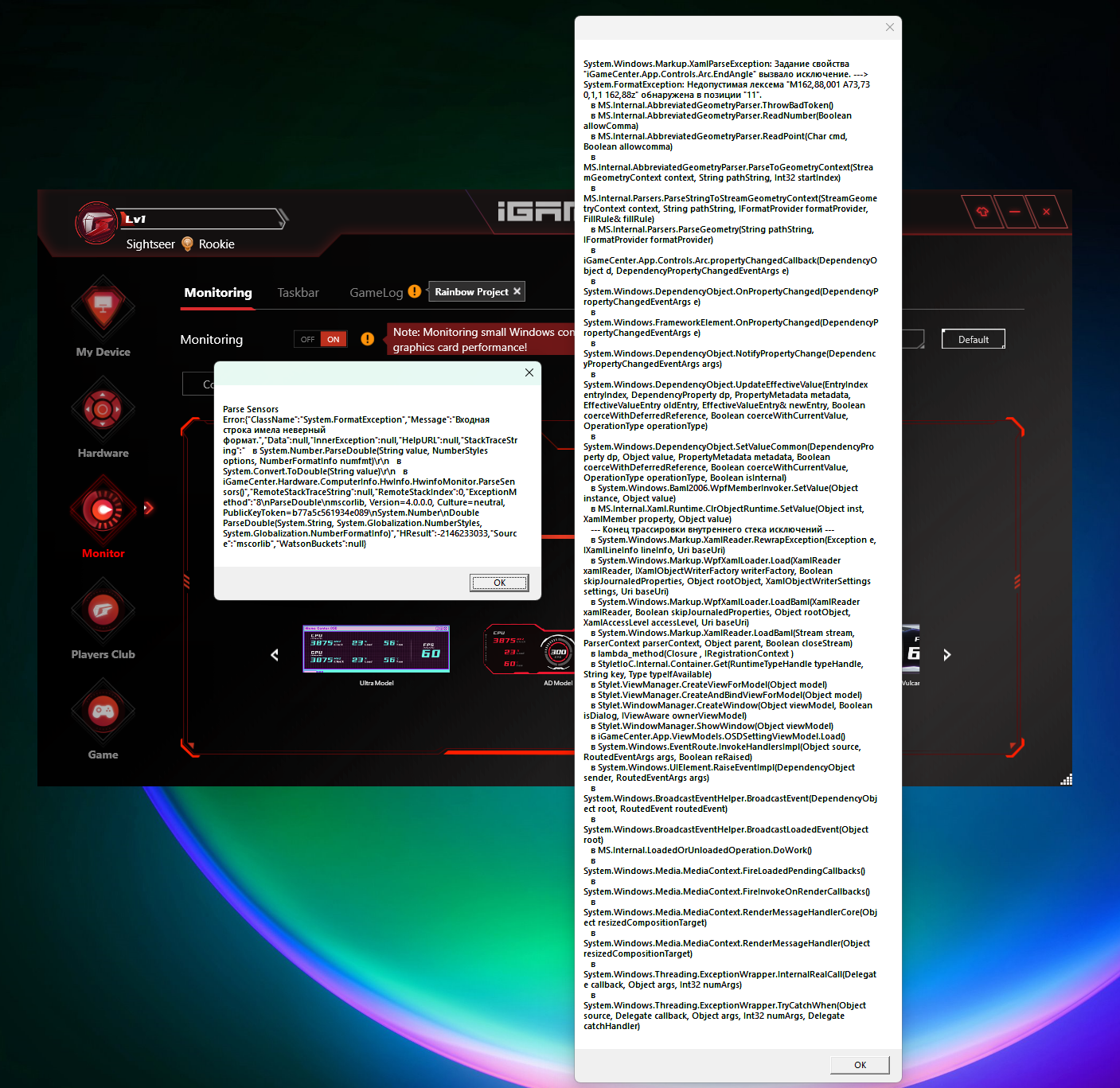 Ребята, всем привет. Помогите разобраться с проблемой. Имеется видеокарта 3080ti colorful vulcan. Проблема в том, что не работает приложение родное для настройки карты. Установка проходит без ошибок, а вот при запуске сыпет кучу ошибок, так жэ при переходе по пунктам меню сыпет ошибки. Хотел отключить подсветку и настроить экран. Материнка msi gaming plus z490, так же пробовал на другой материнке от хуанан, та же ситуация.