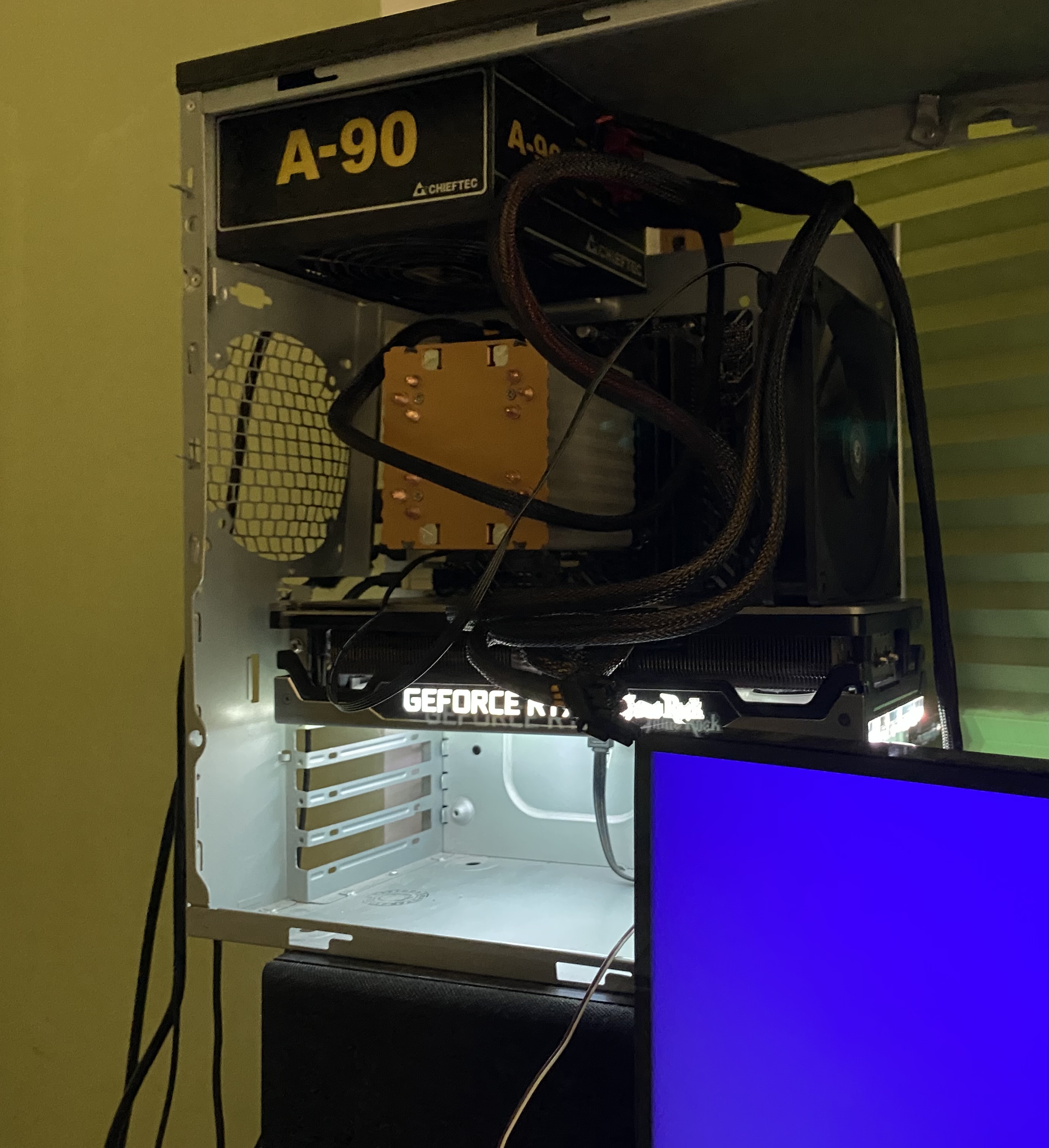 Новичок8 на какой врм? не наверх, а влево взад корпуса, где у тебя сетка круглая и нет фана на фото. обычно ставится там фан на выдув и туда же направляется поток с башни цп. на фото конечно бардак полный, можно же взять не дорогой вместительный корпус по типу zet gamming(adora) п.с в сторону портов вга, юсб и т.д, если так понятнее. корпус без навесного - это не открытый стенд boeng пушка