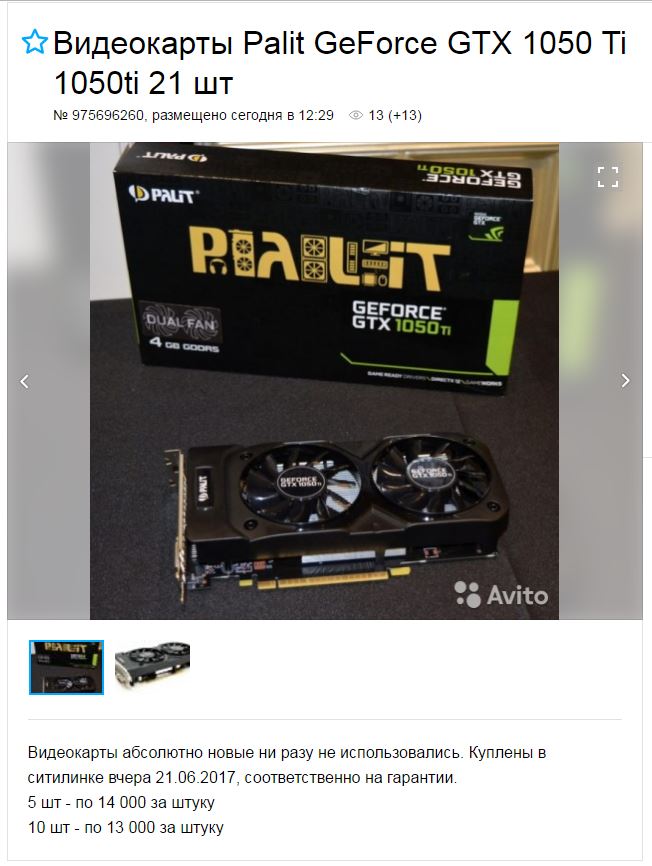 Palit GF GTX1050Ti STORMX 4096Mb нормальная карта ? За 12500