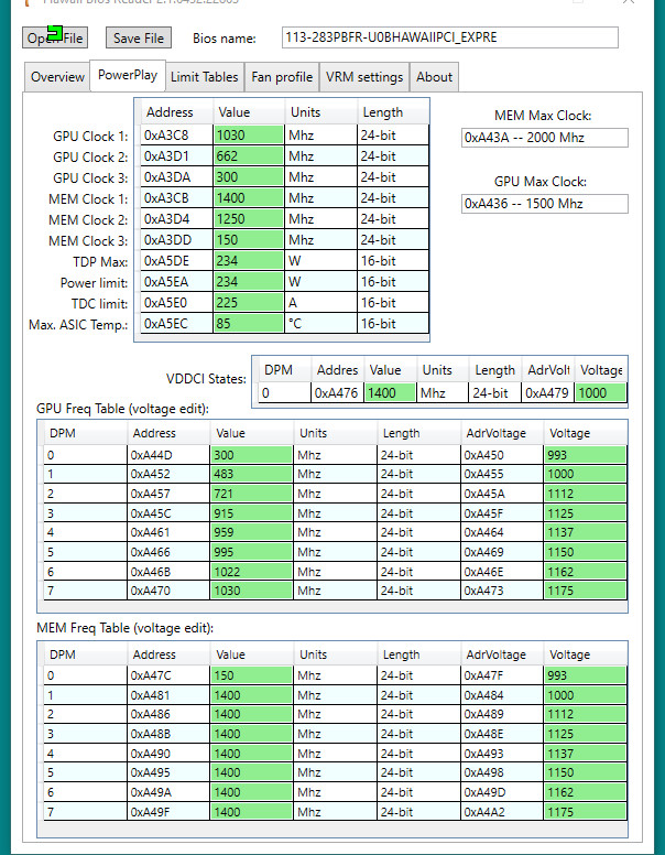 на пальцах: цифры (которые ты видишь вместо напряжений) - всего лишь "метки" подсказка: обрати внимание: в первом состоянии используется реал вольтаж, во всех остальных "метки" сравни метки БИОСов разных 290/390 карт, делай выводы повторюсь : почитай тут - все что можно расжевано https://www.overclock.net/forum/67-amd/ ... -390x.html
