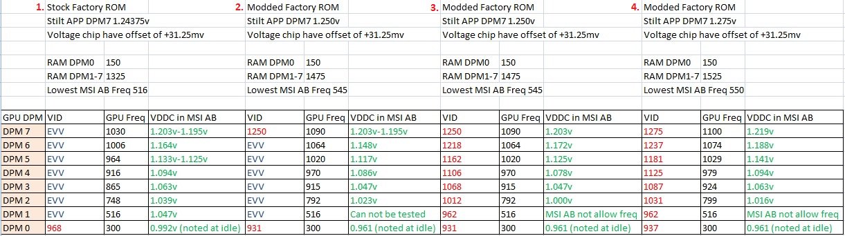 таблица напряжений видеокарт АМД (GCN) ромбиками отметил напряжения состояний r9290 пример напряжений, частот на различных биосах (инфа взята по ссылке выше) пример моего эконом биоса