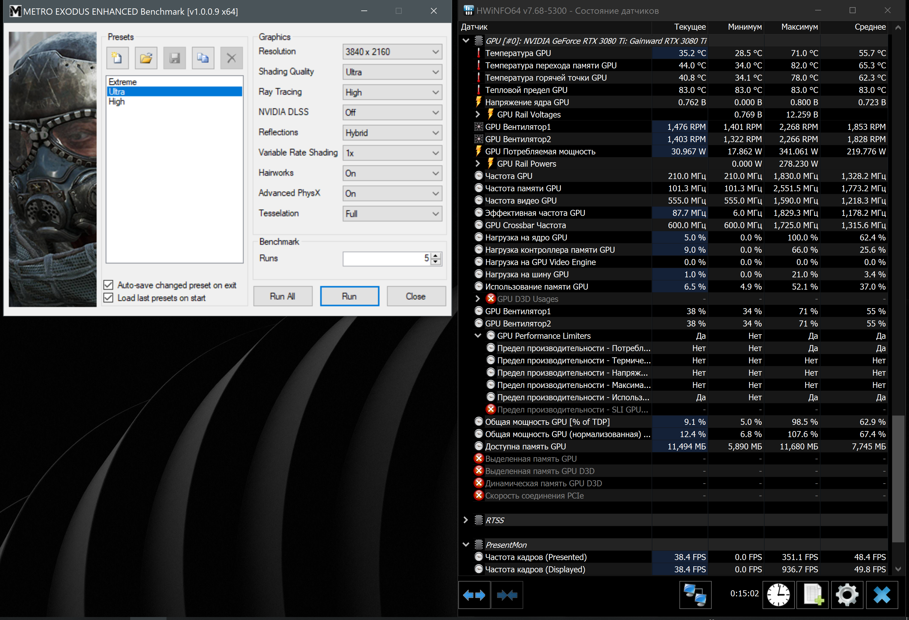 sanskrit48 так а смысл? 2пин карты выше чем 350ват я не видел биосов. да и охлад у тебя гейнвард это лютая помойка. ты даже хотспот не замерил и уже собрался что то шить. прогони метро enhanced бенч 5-10 кругов с замером hotspot, уверен сразу все мысли о прошивки пропадут и глупых вопросов не будет в ветке