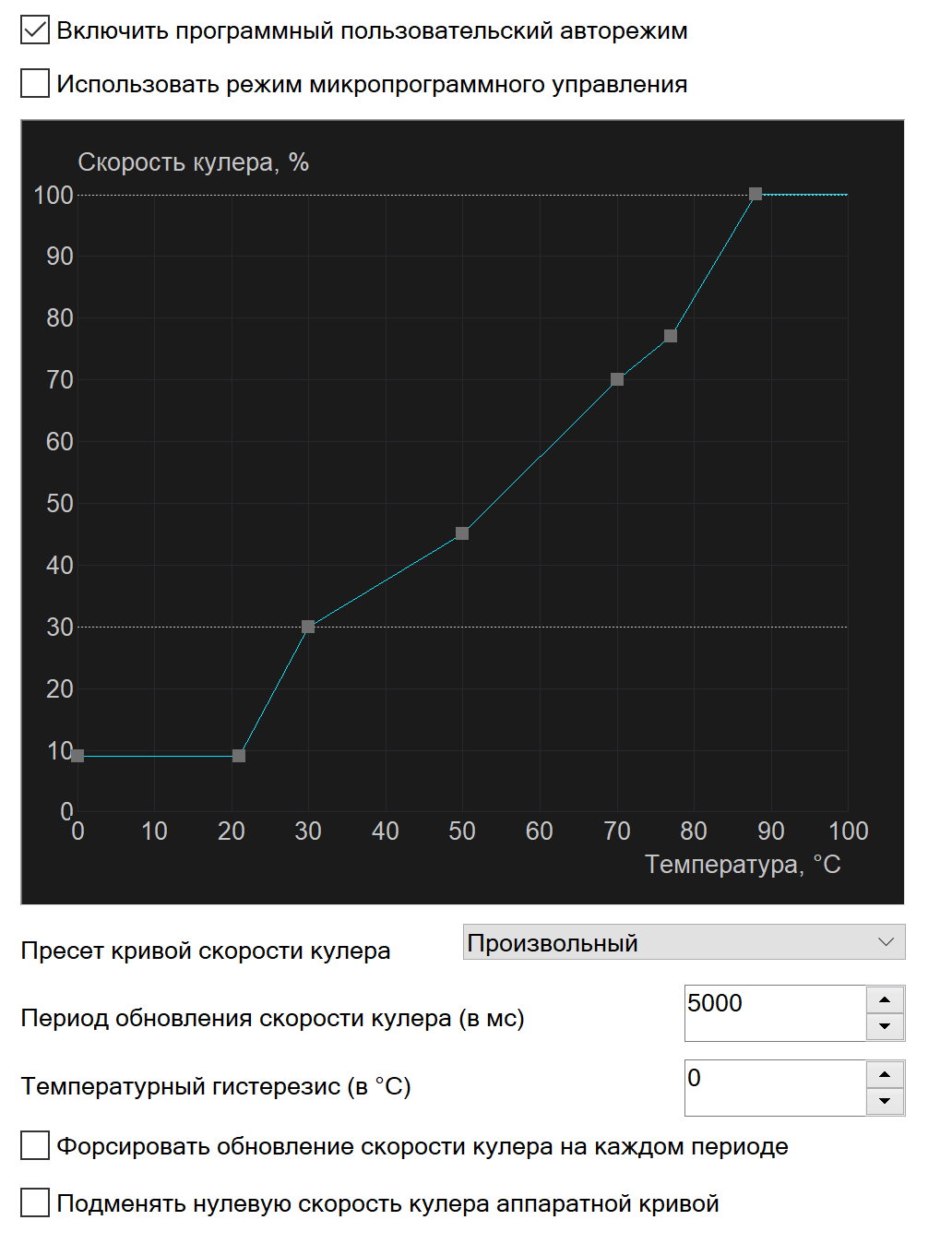 настраивал, в стоке стоят, темп в простое 29, но вот в МетроБенче (5 кругов) на ультра 4К с хаером и физикой, макс gpu77 и hs84, а если руками винты настроить, то 28 простой, нагрузка 71-78 соответственно. Также с кулерами в стоке, фпс в среднем на 3-4 ниже выдал, чем с ручной настройкой.