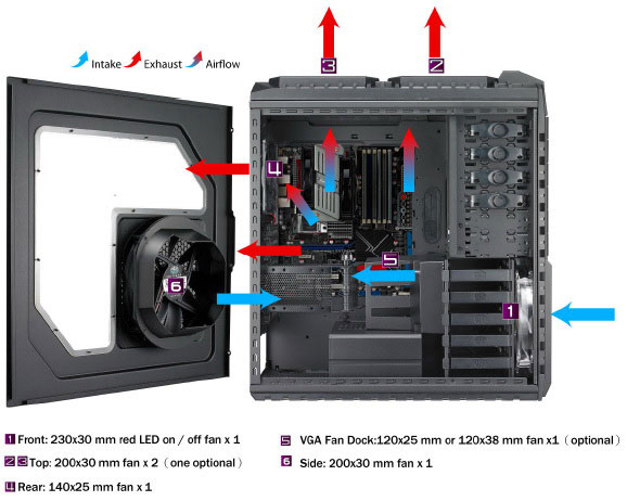 и это ты называешь боковым обдувом видеокарты я имел ввиду боковой обдув как например на HAF X где на видеокарту дует сбоку 200мм вентилятор и получаются встречные потоки горячего и холодного воздуха