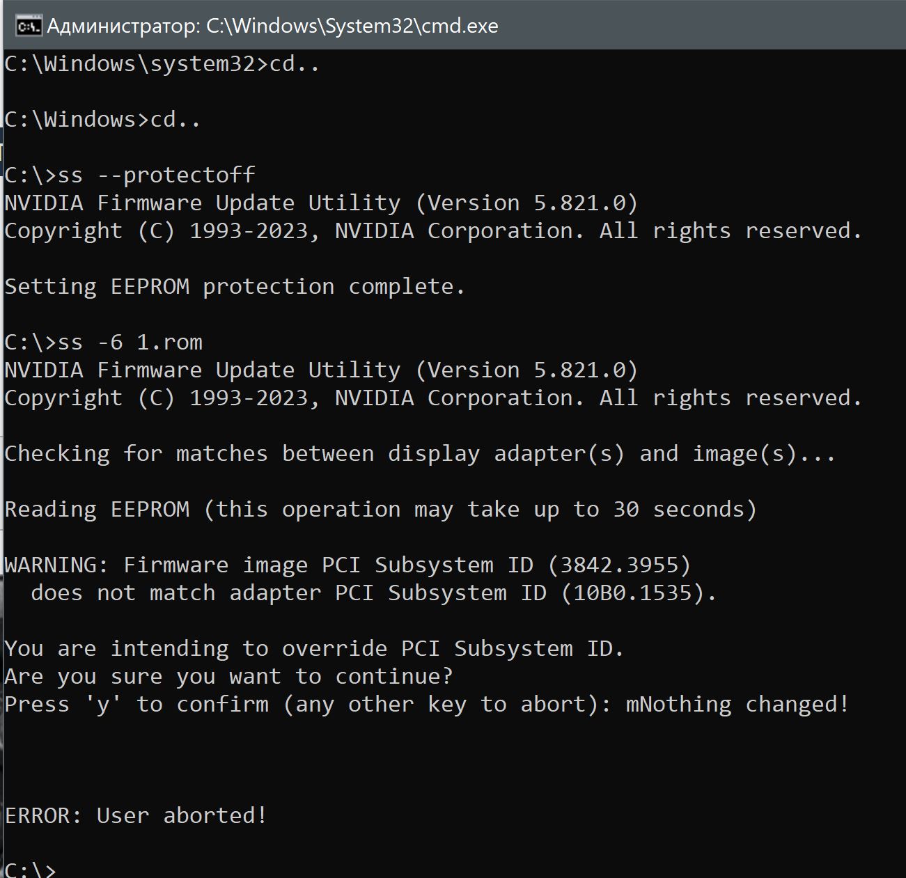 Добавлено спустя 1 час 39 минут 20 секунд: Раньше я биос не прошивал на ВК. Подскажите, после ввода команд в строке, появляется вот такой вопросик (см.скрин). Так и должно быть? Нажимать "Y"? или этот вопрос появляется только при явной несовместимости биосов? У меня gddr Micron, а на EVGA возможно Самсунг, это как то влияет на прошивку?