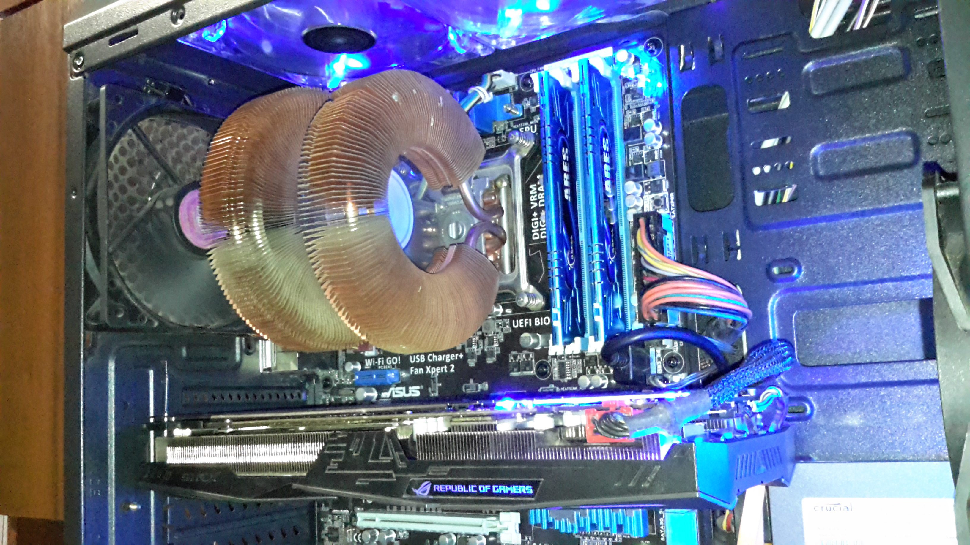 Здесь как раз та 1070 Стрикс, о которой я говорил выше. В этом корпусе и этом компьютере она была продана. Без верхних вертушек жарко и видяхе на примерно 3-5 градусов, и VRM около процессора горячее.