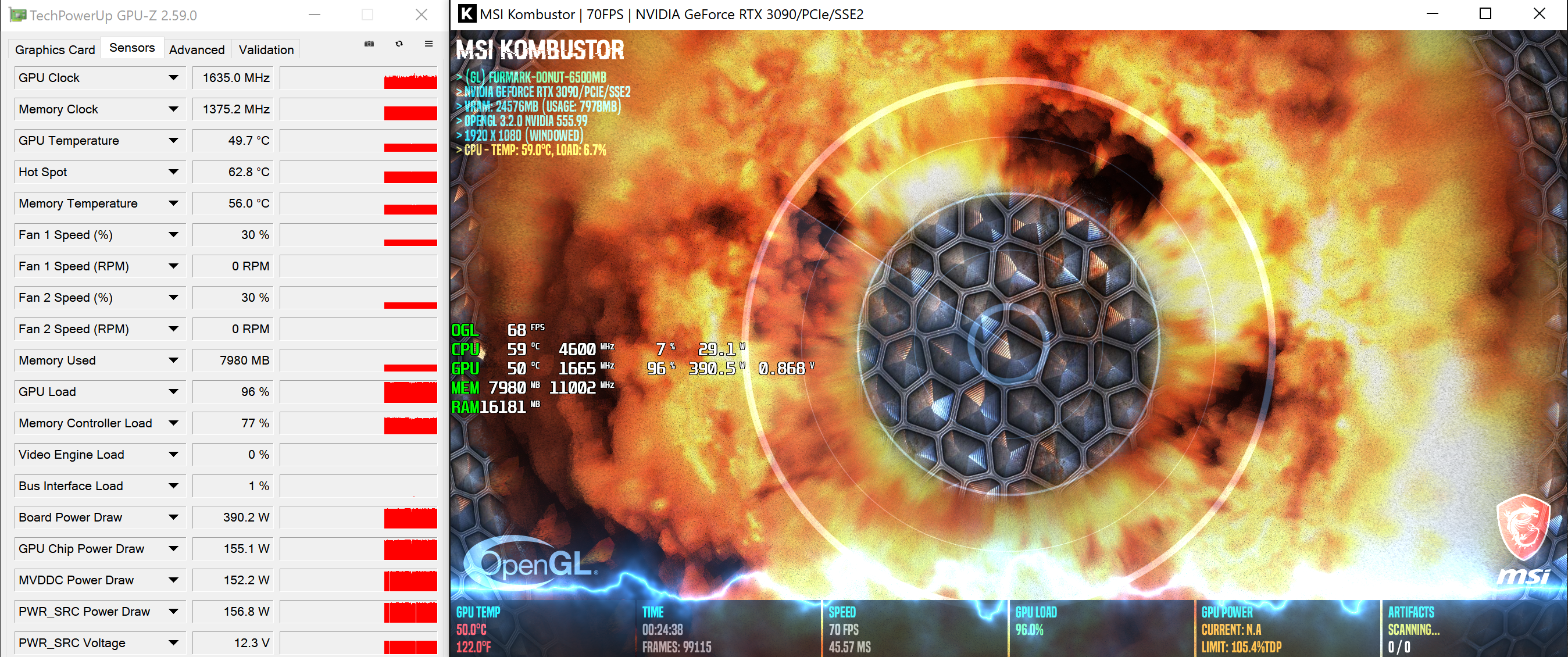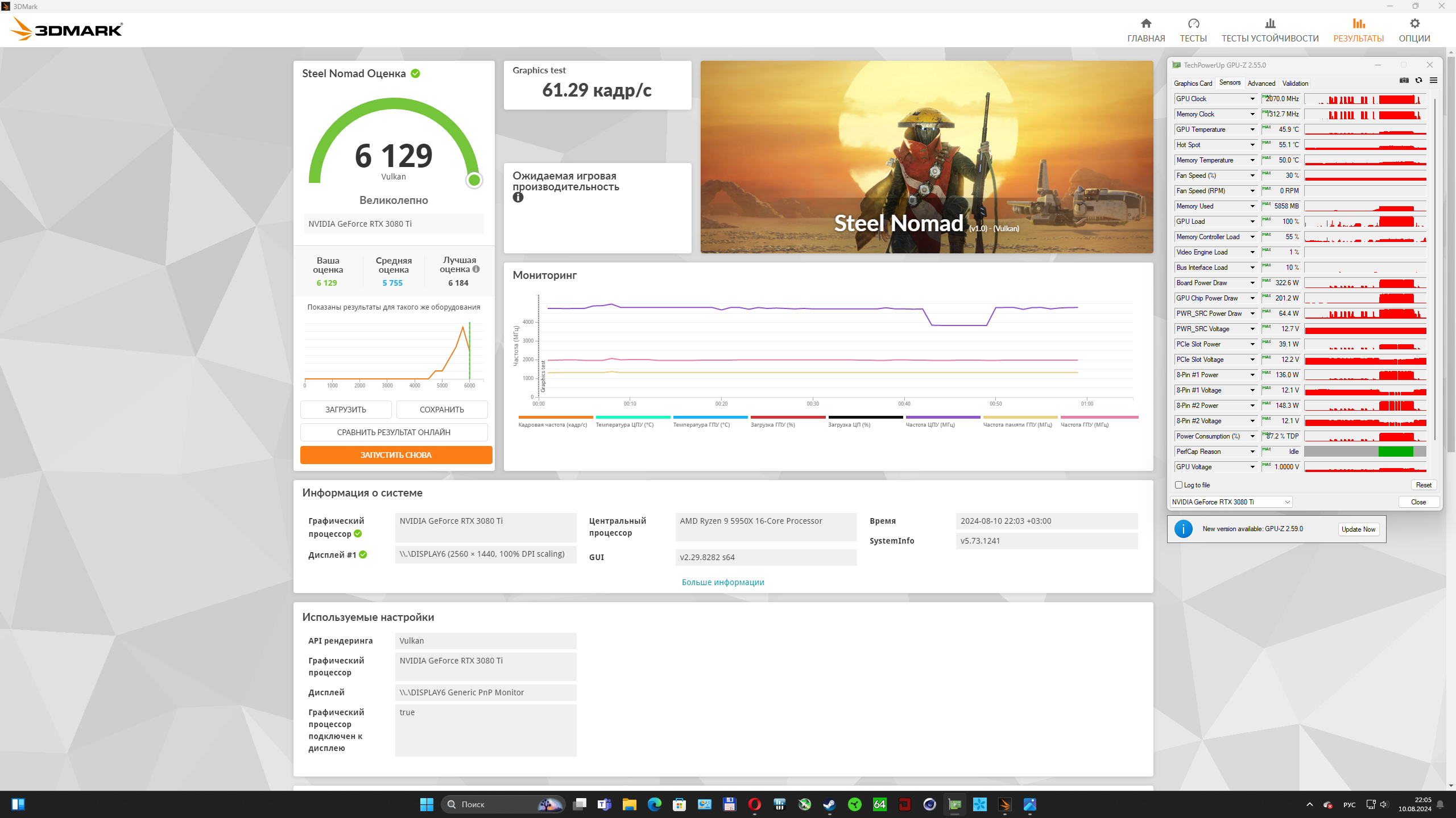 3080GF 380Вт - ГПУ - 60 гр, ХотСпот - 72гр, память - 52 гр Стресс Тест - Steel Nomad Нормалек?