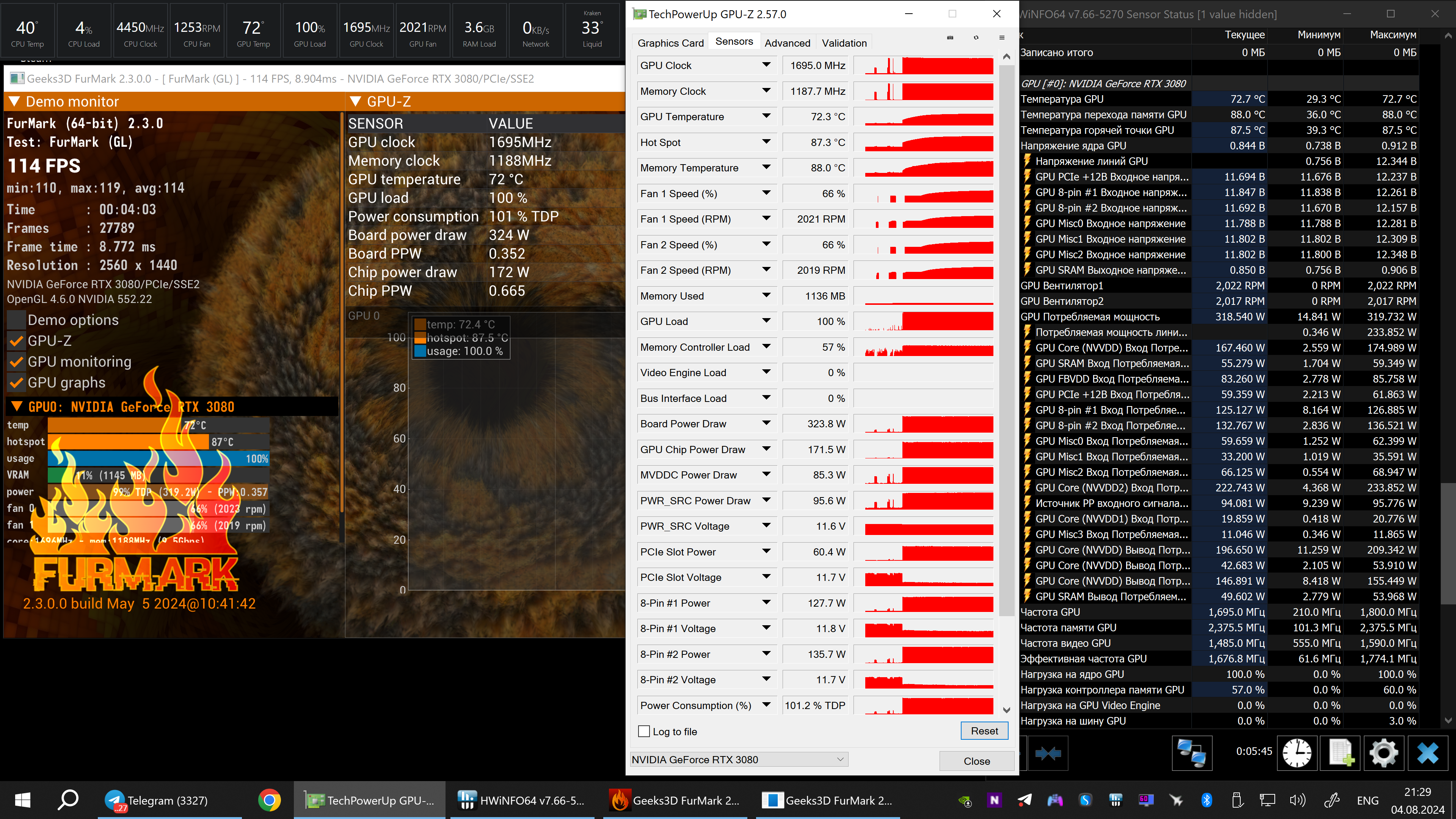 Но опять это сток, если андервольт 1800/0,806v и ручная настройка вертушек, то гпу 65 градусов максимум, при полной тишине, ну и жор 270ватт, а fps в играх такой-же...