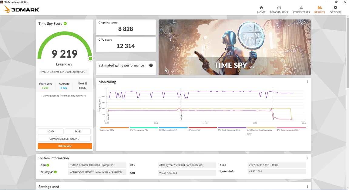 Недавно тестировал RX6600, так вот он в TimeSpy проиграл около 10%, а в Firestrike наоборот, выиграл около 7-8%... 3060ti на фоне этой RTX3060 Laptop просто монстр, больше 30% разницы.