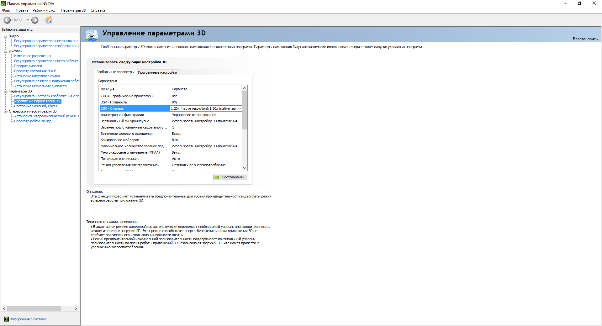 правой кнопкой мыши по раб. столу, "панель управления NVIDIA", там делаешь так