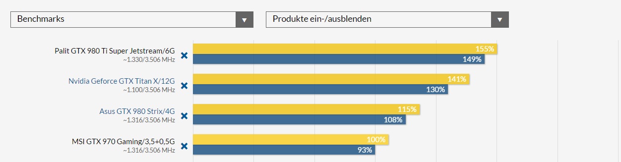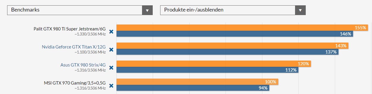 Если на одинаковых частотах 980 на 30-40% слабее 980ti, то как сможет референс 980 (пусть даже на 100мгц больше имея начальный буст) в 1.5-2 раза сократить разрыв?