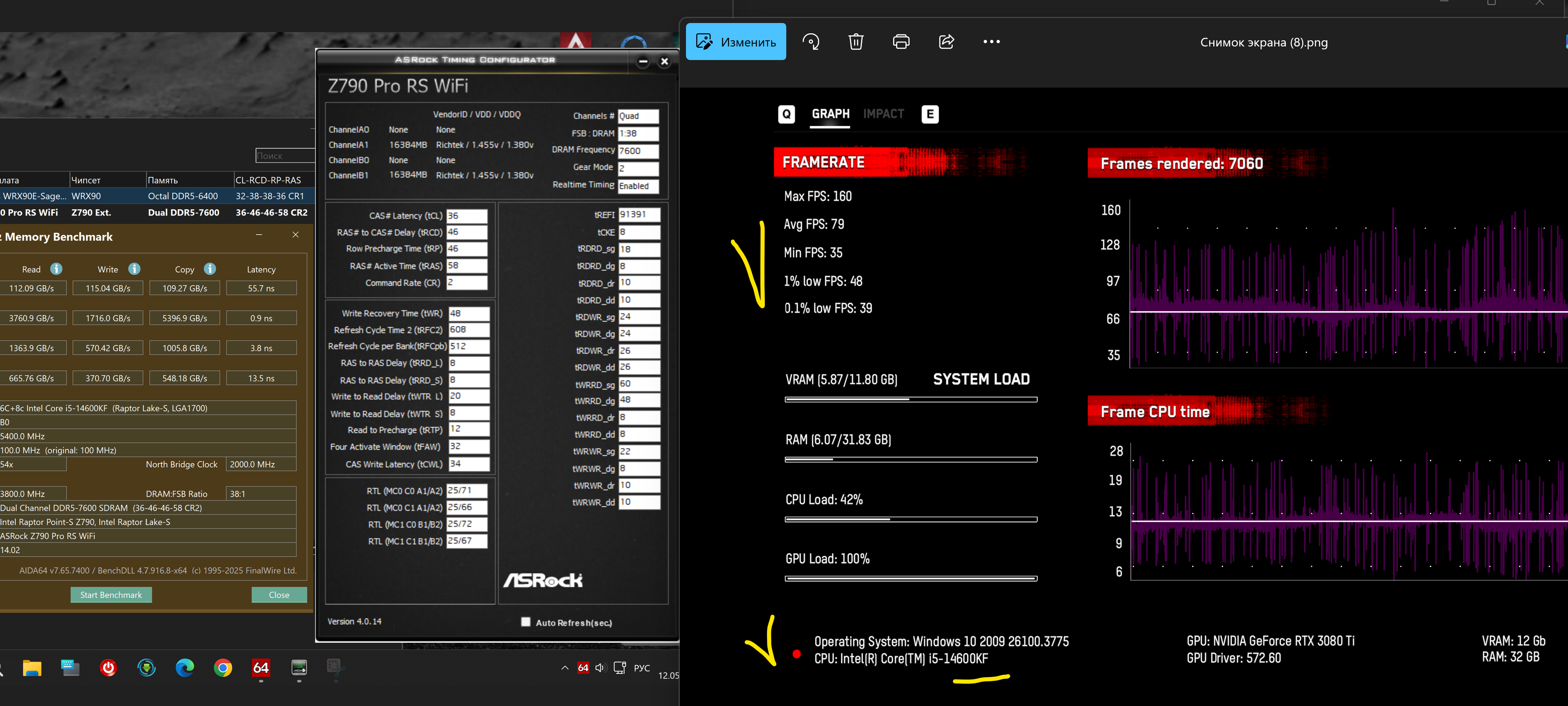 Всем привет! Поменял себе мать, проц и оперу. Было 12400f, b660m riptide, ddr4 3400 14-18-22. Стало 14600kf, Asrock z790, ddr5 7600 36-46-58. Изменений 0! Однако сравнил тест ВочДогс Легион и тут оказывается, на новом железе просадки по 1 и 0.1 в среднем 28-40, а было 1 и 0.1 50-60+.... Единственное, раньше В10 была, сейчас В11. Дрова в тестах одинаковые и настройки. В чем причина не пойму....