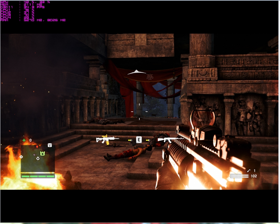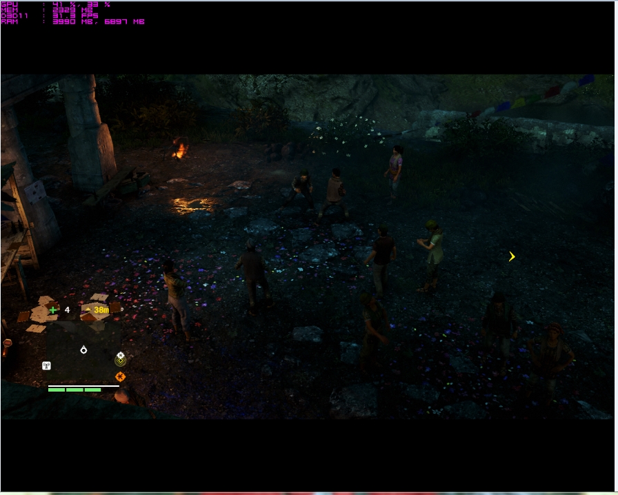 отсюда и ровные 30 фпс.[/quote]. Нет,нет ... Это именно геймплей, кроме скрина с девушкой где кат с 60 фпс и при этом опять же ничего не загружено. Вы будете смеяться но я играю с этими черными рамочками Т.к мой монитор 4:3 -1280-1024 ,а Far cry 4 имеет настройку только 5:4 - 1280-1024 из за этого черные полосы по 5 см.