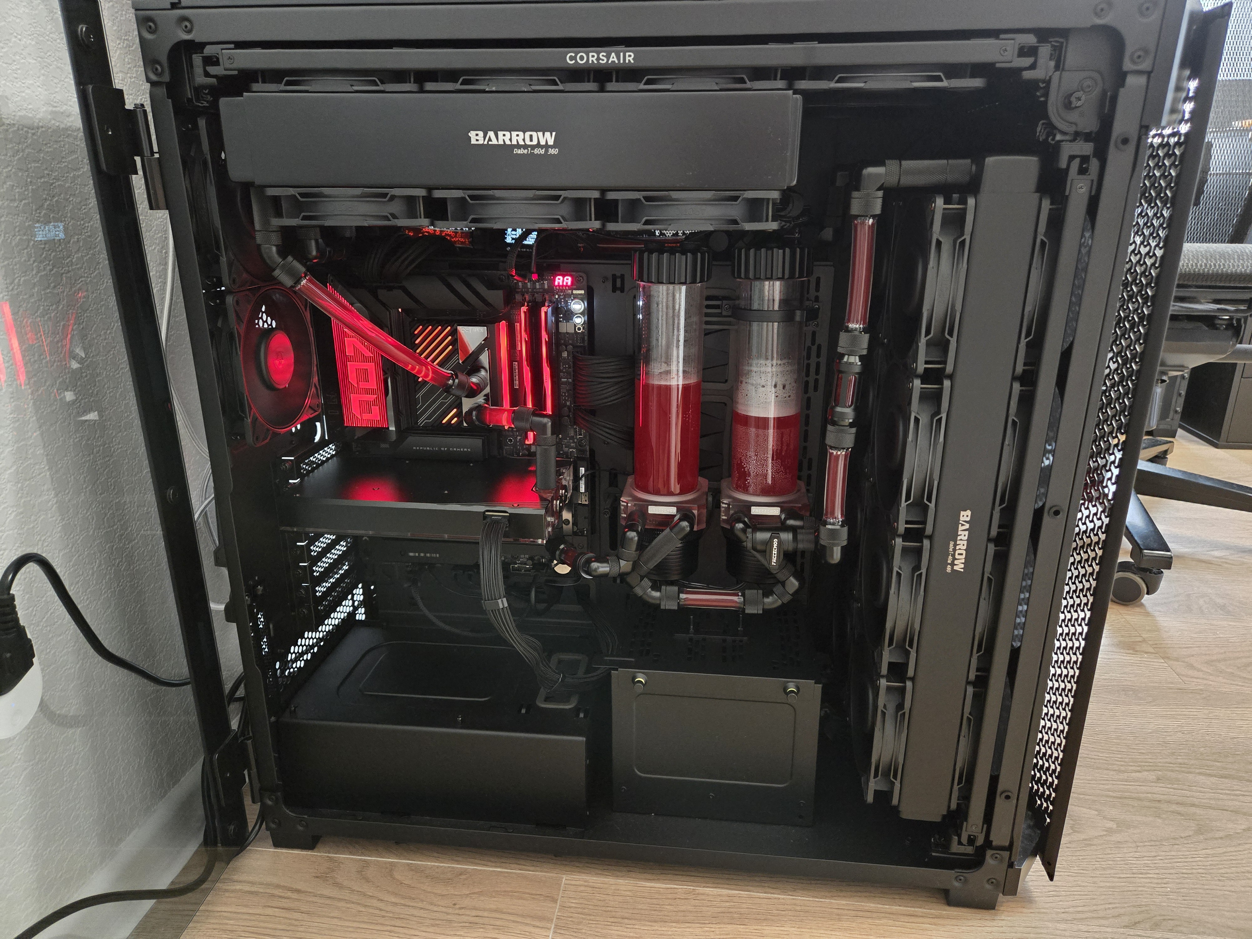 Получил я свой Barrow для Palit RTX 5090 GameRock, брал тут за 8 тр https://aliexpress.ru/item/100500944735 ... 1742713296, 2 дня убитых просто, начну с того что инструкции нет, то что у них на сайте по прокладкам полная хренотень http://www.barrowint.com/product/qfgxkl ... /1857.html по самому блоку, он шикарен, я промерил все размеры штангеном, сделан за такие деньги ну просто отлично, только продал свою 5080, на нее ставил Алфакул за оферпрайс, что то около 25 тр, вот решил попробовать барров, то что у них написано на сайте по прокладкам, куда какие нужны полная туфта, чуть мосфеты себе не спалил, ну уроды, такой качественный блок делаете, неужели как в Алфакуле трудно сделать инструкцию и положить правильные прокладки, вот 2 дня сидел правильно подбирал прокладки, кому нужно сделать рисунок, так же установил свою пружину рамку под проц, а вот винти взял от барроу, потому что розными не дожималось, так же установил 3 мм прокладки с другой стороны под память и разъем 12pvr, по аналогии от Алфакула, в итоге при 800 ватт с прошитым биосом от матрикса в бублике 61-64, память 45, на воздухе улетал за 90 на полных оборотах на 800 ватт, все время была открыта крышка, да и шум стоял. Сделал всего одну фотку, было не до фоток, руки трусились, и раз не доткнул, карта не завелась, кирпичей в штаны наложил, карта под 300 к и тока купил блин