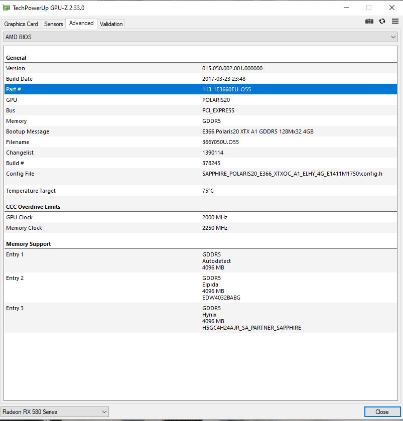 посмотри там же в гпу-з тайминги памяти. Если их не правили, то может это действительно нитро рх580 с дефолтным биос, только по какой-то причине с охладом от нитро рх570(а соответственно и всеми наклейками от рх570)... если охлады вообще можно менять между этими картами =\ //У сапфир нитро 570/580 есть переключатель биос, попробуй просто переключиться на второй
