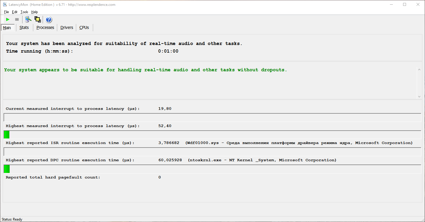 Вы что меряете? Переключайте в Kernel режим Latencymon, что бы мерить задержку на более низком уровне, потом на вкладке драйвера смотрите, в каком проблема. На dxgkrn у меня 0.10-0.15.
