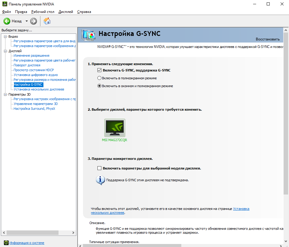 Подключи по DP, выбери разрешение из списка для ПК, герцовку максимальную, G-Sync тоже включи, но галочку на нижней опции совместимости с текущим монитором не ставь, перезагрузи комп, смотри.