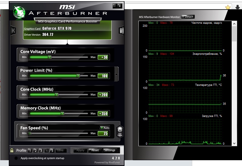 но надо поднимать вертушки чтобы карта выше 60 не грелась, потому как идет перегрев и из за этого не стабильный разгон.