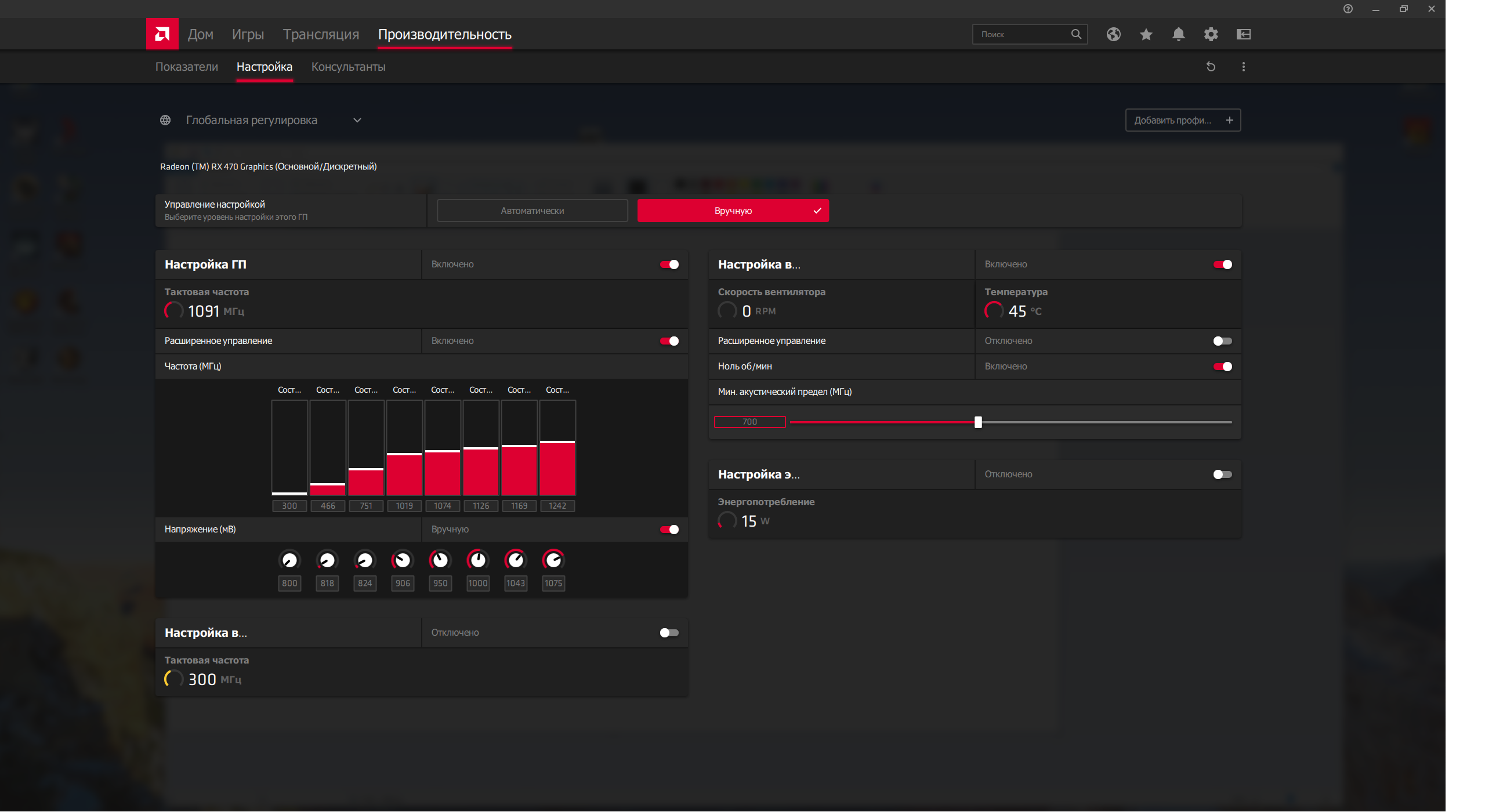 Q: По мониторингу напряжение на GPU немного отличается от установленного. A: Реально напряжение выставляется кратно 6.25 и округляется в большую сторону. То есть, если Вы выставили 1137, то реально у Вас будет 1137.5, а если выставили 1138, то уже реально будет 1143.75 мВ.
