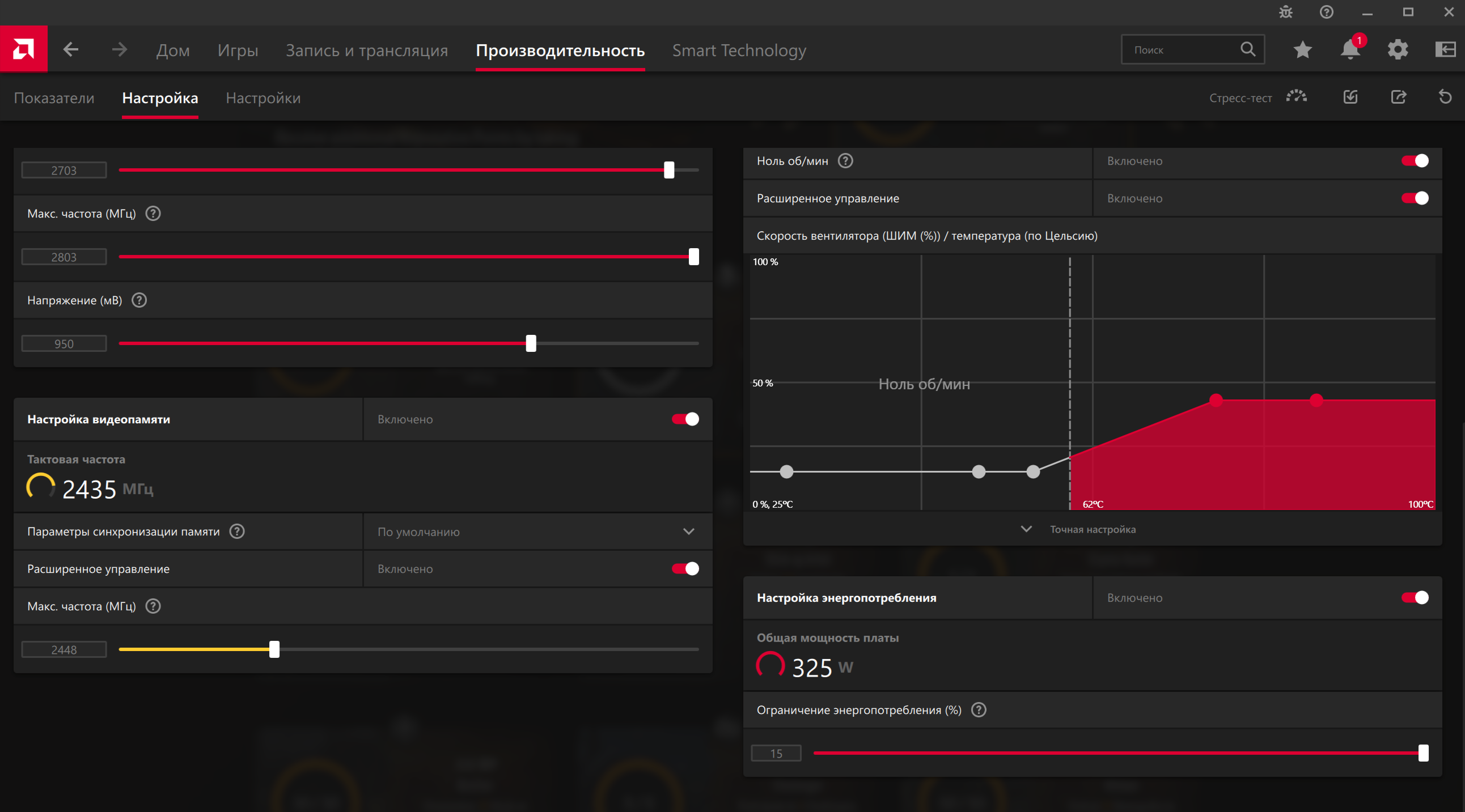 Максимальный уровень Power Limit можно увеличить лишь на +15% независимо от того, настроена видеокарта по умолчанию на 355 Вт или 420 Вт. Модификация VBIOS пока невозможна, поэтому изменить таблицы Power Play нельзя. AMD слишком сильно ограничила возможности для пользователей, как «вверх», так и «вниз».