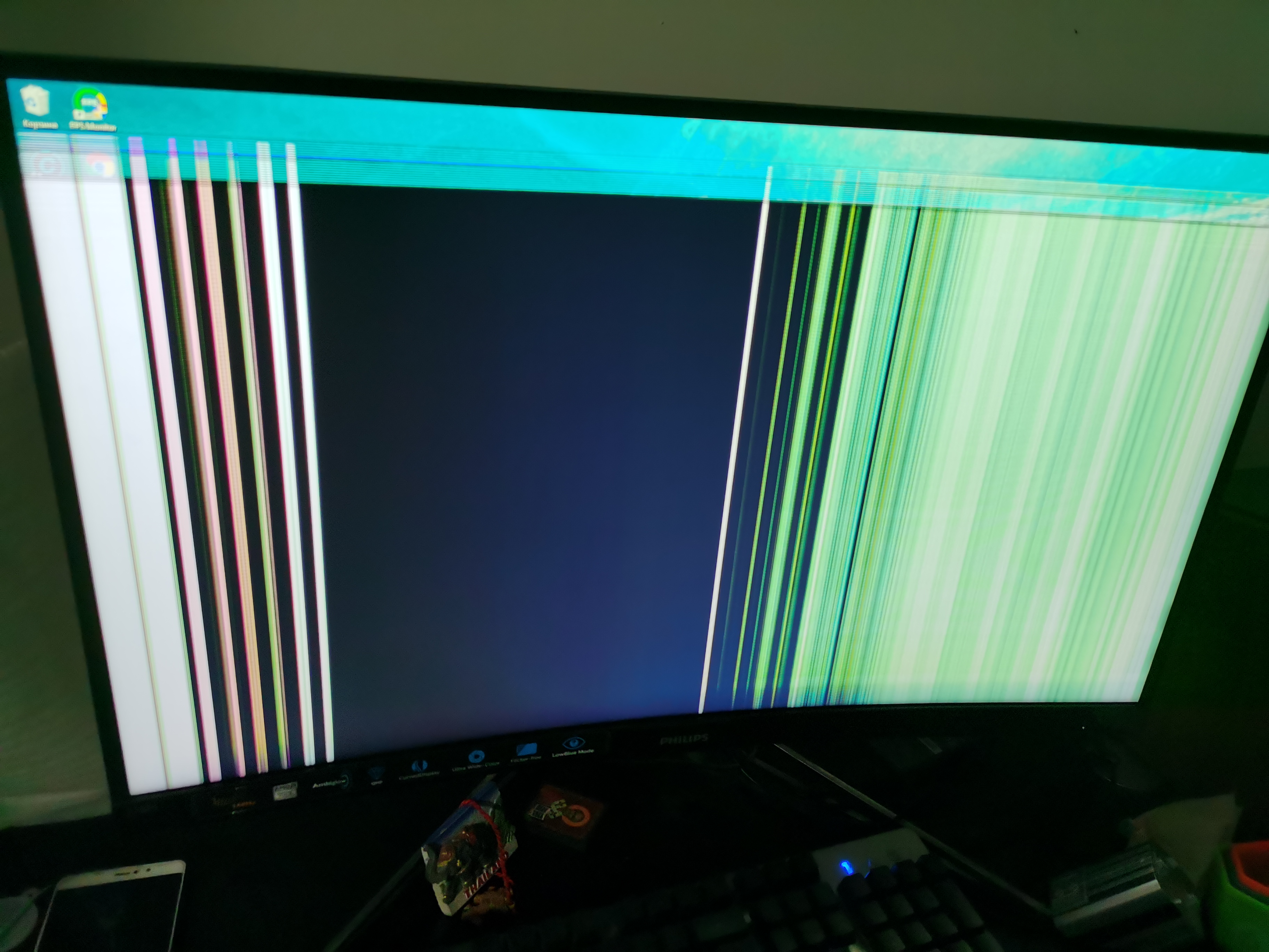 Чот на видяху вообще не похоже. Скорей порт или кабель на мониторе, видяхе. Ну или мониторная матрица. Моли всех богов чтоб был монитор, его купить раз в 10 легче и дешевле