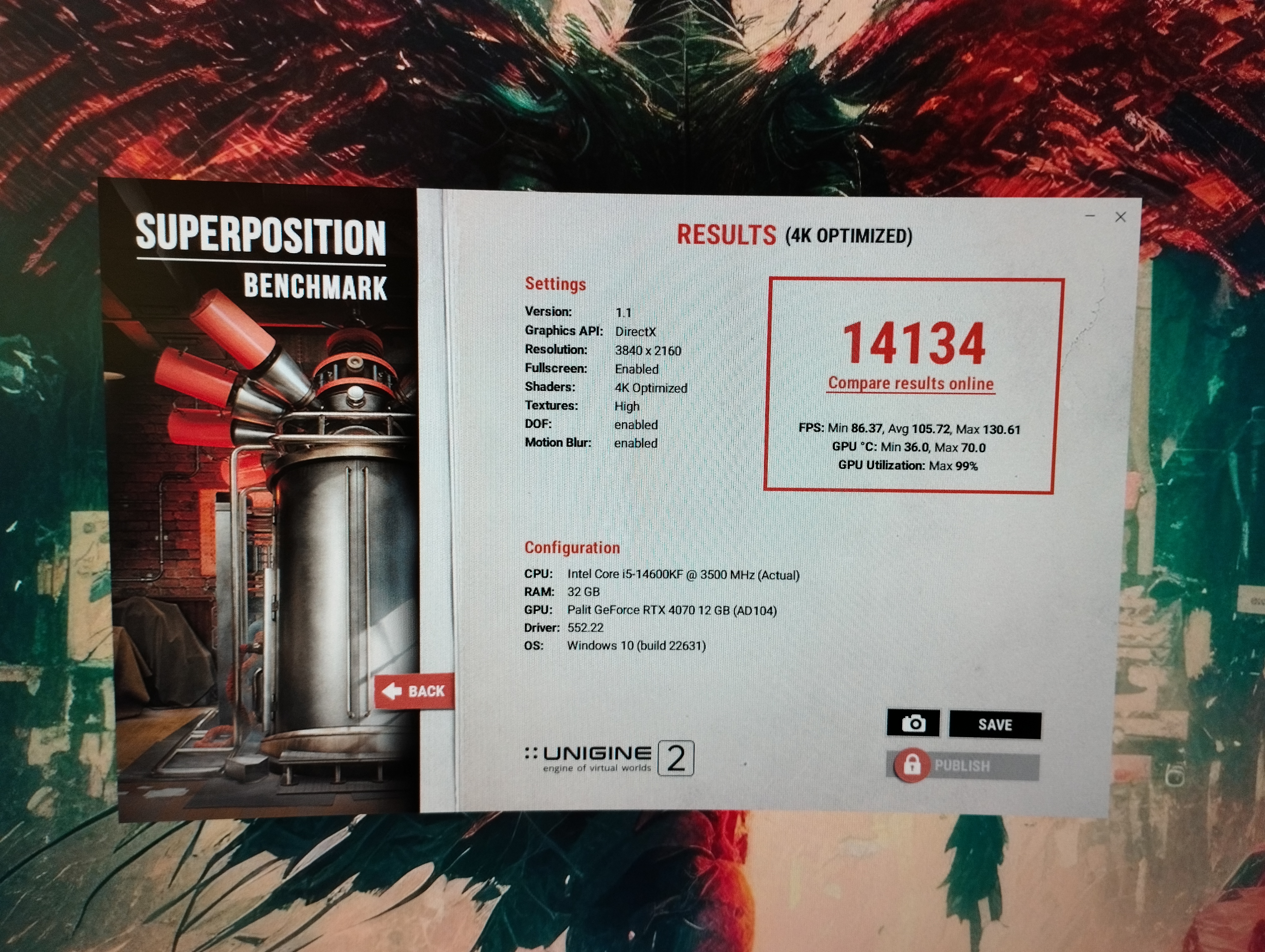 Добавлено спустя 2 минуты 42 секунды: Может кому надо. Вроде пока стабильно работает. Карта palit rtx 4070 dual, без андервольта. По чипу +220мгц, по памяти 1150мгц, температура в бенчах не выше 70-74 градусов. Haven Benchmark 186fps средний и 454,5фпс максимальный. Стабильно без артефактов.