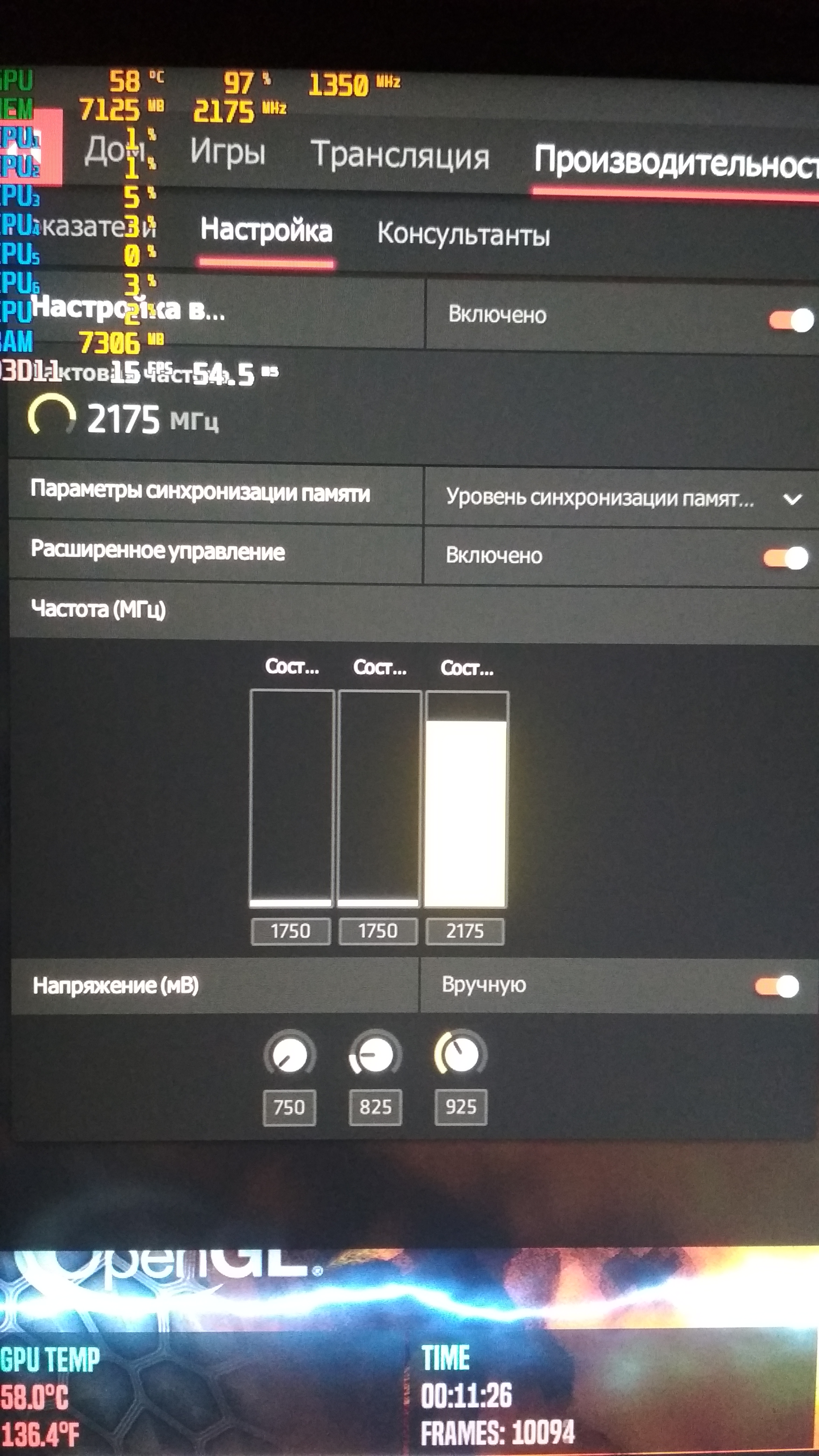 Q: По мониторингу напряжение на GPU немного отличается от установленного. A: Реально напряжение выставляется кратно 6.25 и округляется в большую сторону. То есть, если Вы выставили 1137, то реально у Вас будет 1137.5, а если выставили 1138, то уже реально будет 1143.75 мВ.