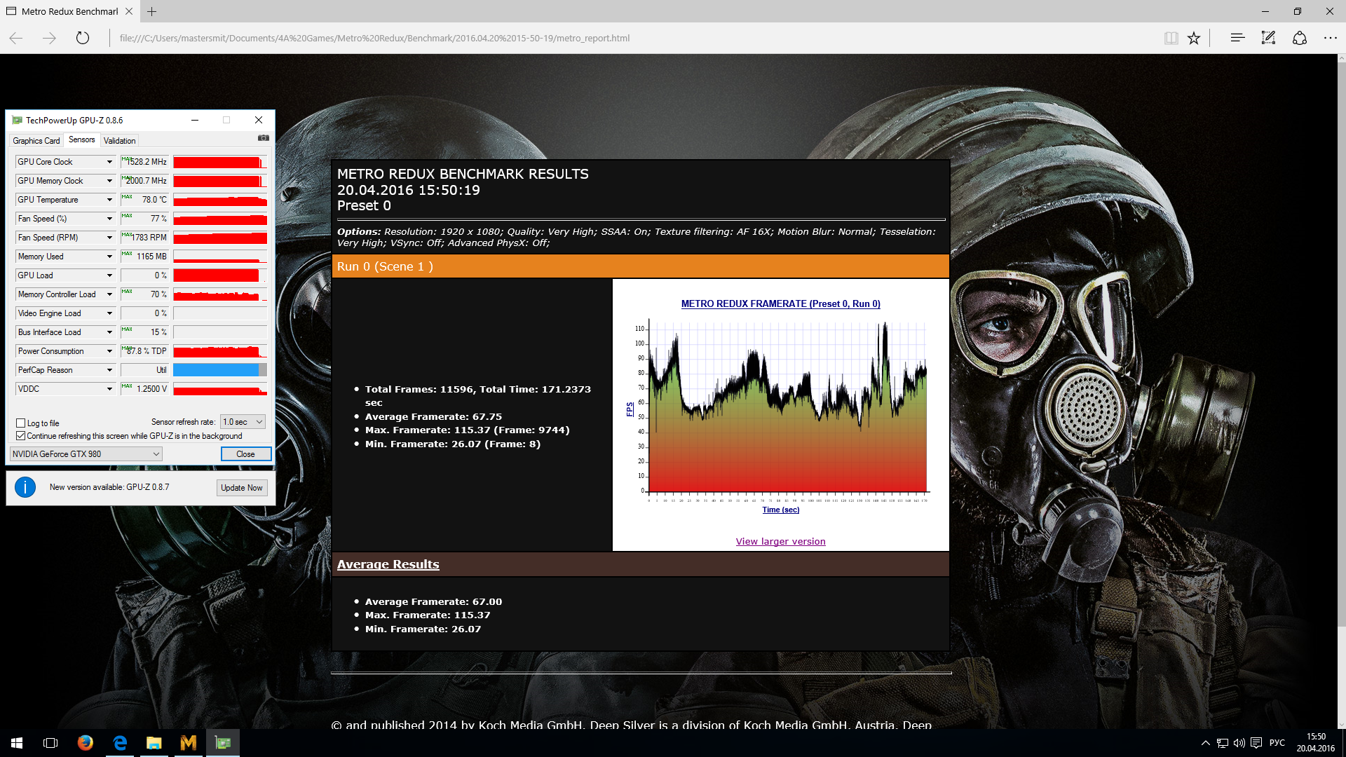 Правда все таки 1528 походу многовато для моего экземпляра.. В Ларке артефакты эти черные при 1528.. Если в ней есть, значит и еще где нибудь выскочат.. Вчера вообще буст как то интересно работал..на секунду-две после запуска тогоже МетроБенча частота могла вырасти и до 1455.. С полминуты подержаться на 1541 и скинуться до 1528..ну и далее 1516.. ну про 1600 я уже говорил