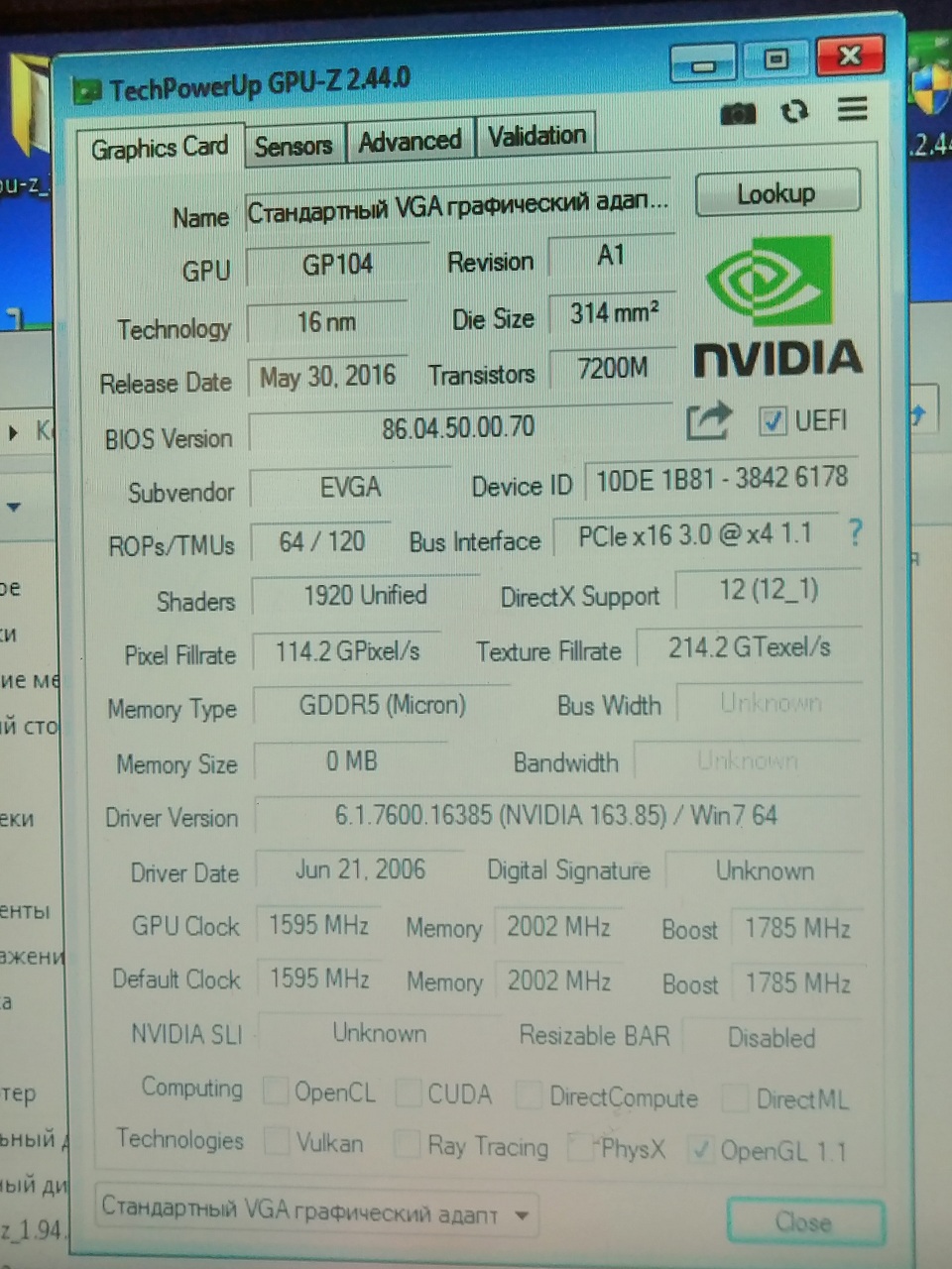 Так надо снимать ограничение.Но предварительно убедиться,что нужная версия биоса. И,если судить по ID 10DE-1B81,то это все же версия карты SC. https://www.techpowerup.com/vgabios/186 ... 2-161015-1[/quote] эту версию еще раз попробовал... эфект тот же... прикладываю фото... с текущей ситуацией...