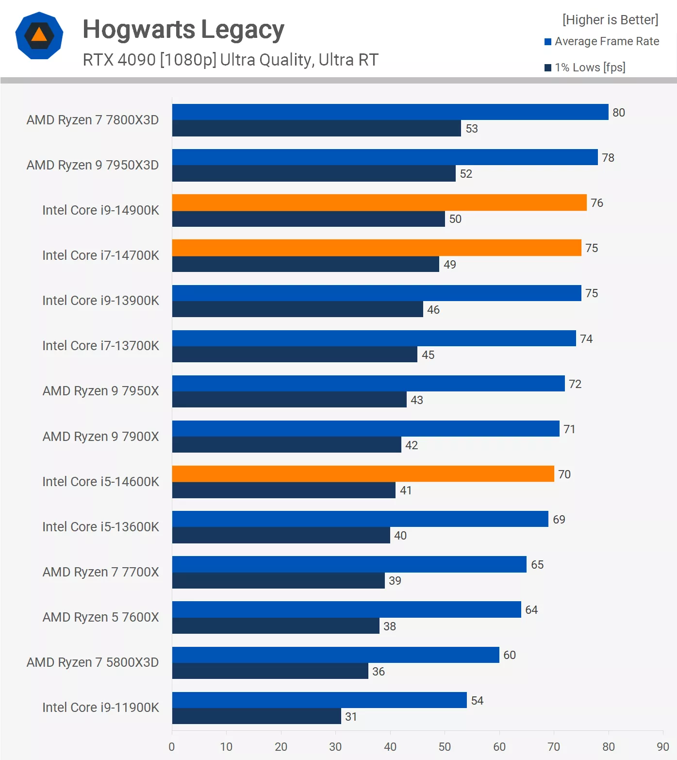 На ютубе проверь. Куча тестов 7900XTX с разными процами.