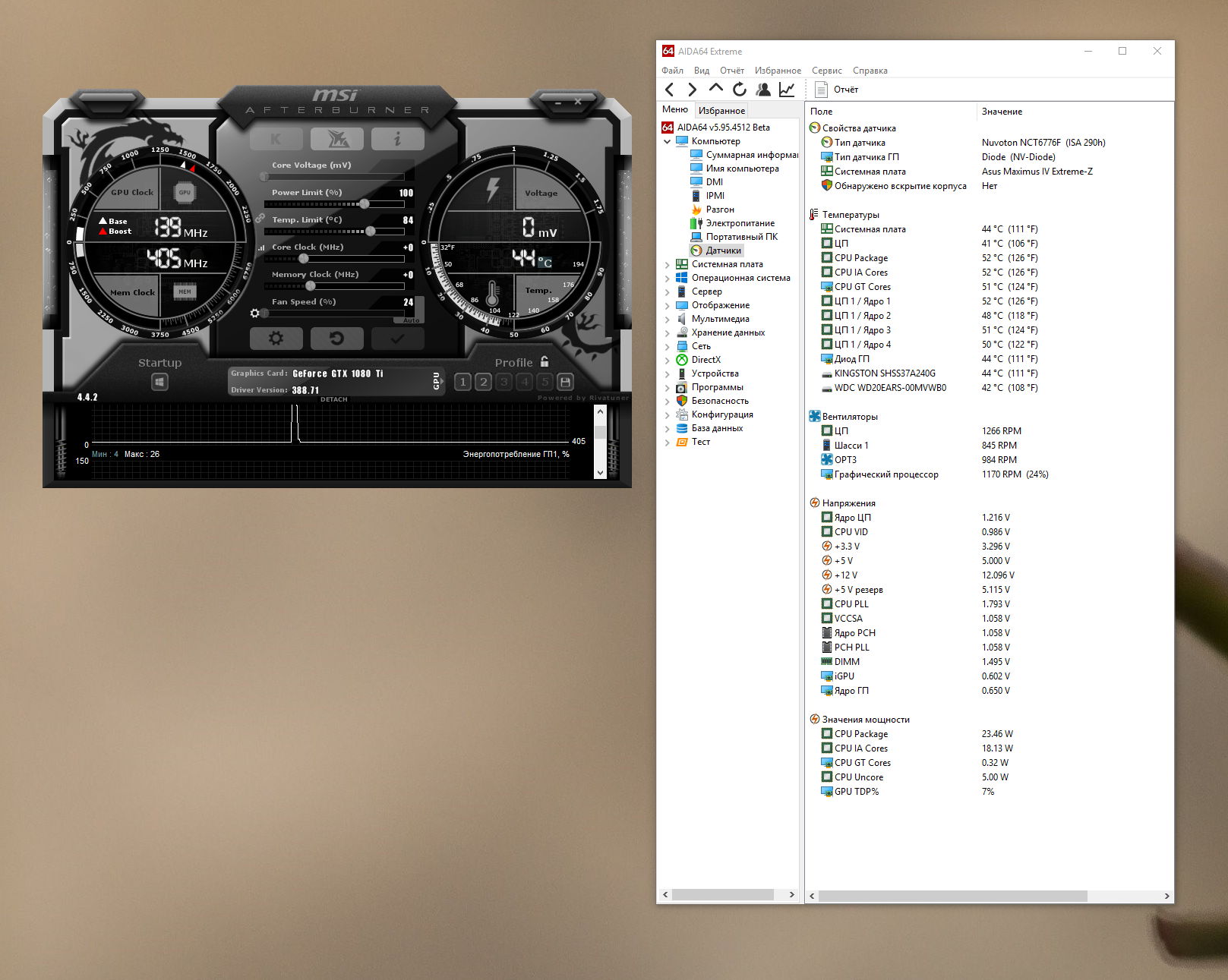 То, что после включения отредактированного профиля заложило уши от тишины - действительно такое WOW случилось, но уши-мозг уже адаптировались и все равно шум раздражает. И вообще, у этой карты скорость турбины заявлена минимум 23% (что показывают все графики), то есть получается, что на слух я понижение шума услышал, но на цифрах их нет. Схожу с ума? Или может частота вращения действительно упала но совсем немного. Но этого немного оказалось достаточно что бы пропал генерируемый турбиной особо раздражающий меня (на 1100 об.мин.) диапазон частот.