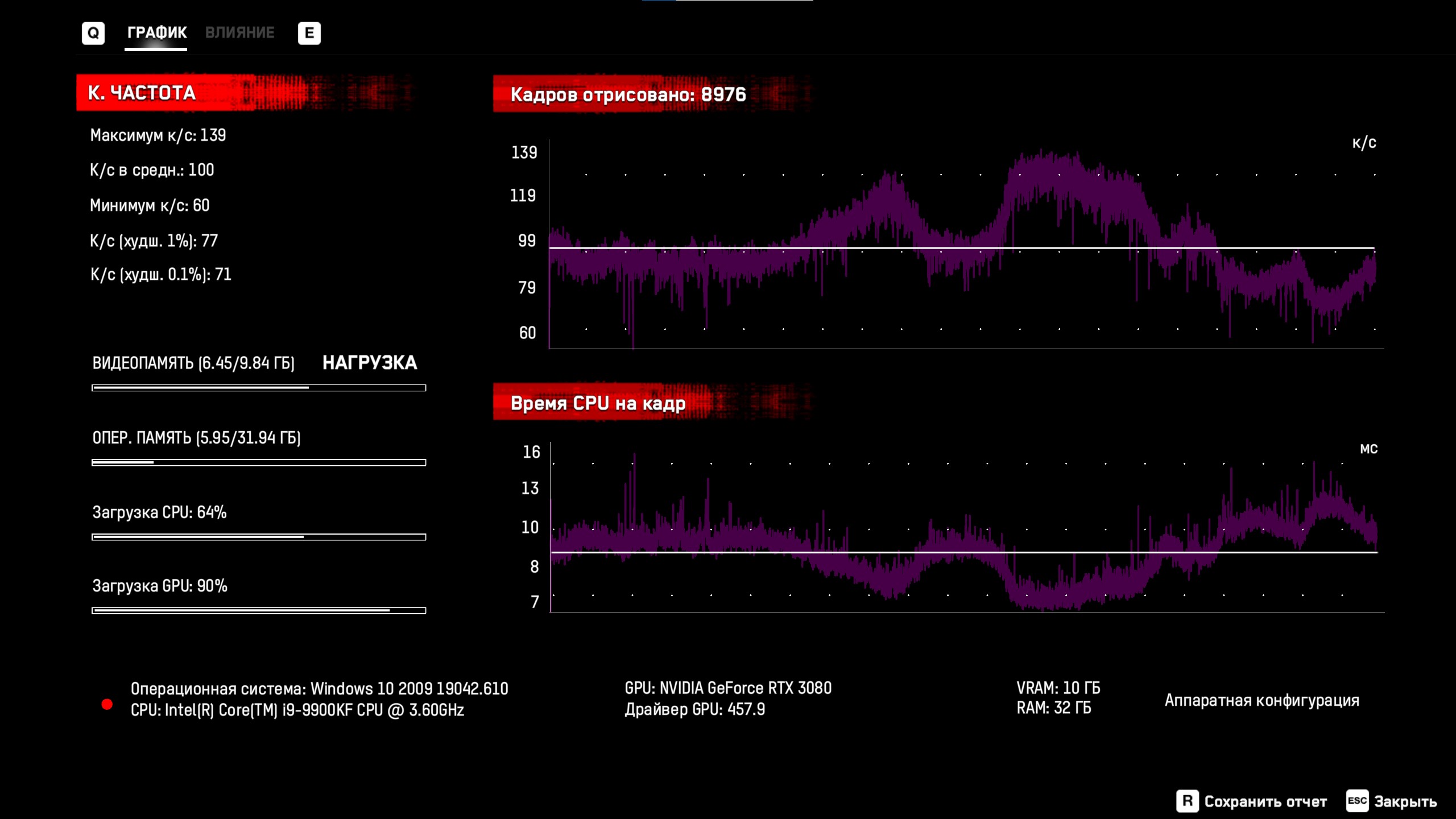 Поигрался немного с настройками, включил RTX, затем DLSS на производительность - без него никак. Или выключать полностью RTX&DLSS, но визуально картинку надо еще проверить как будет лучше, ща уже глаза сливаются и не видят